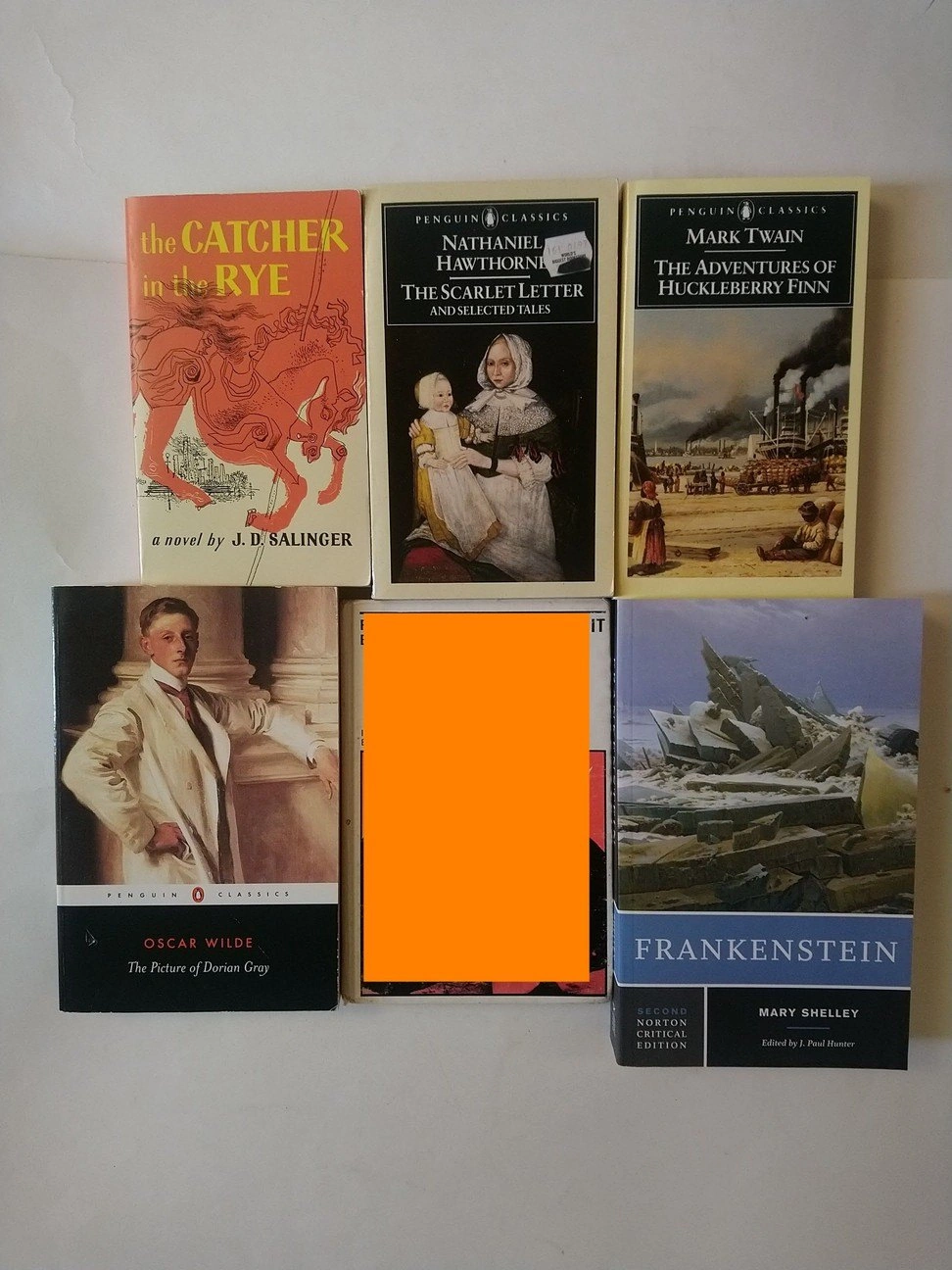Location: Yonge and College /downtown Toronto $4 each. Cash only; prices are firm. - The Catcher in the Rye - J.D. Salinger - The Scarlet Letter - Nathaniel Hawthorne - The Adventures of Huckleberry Finn - Mark Twain - The Picture of Dorian Gray - Oscar Wilde - Frankenstein - Mary Shelley Feel free to check out my other book posts as well!