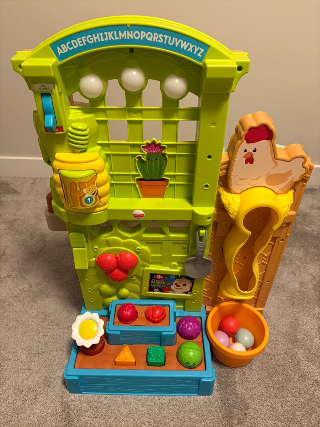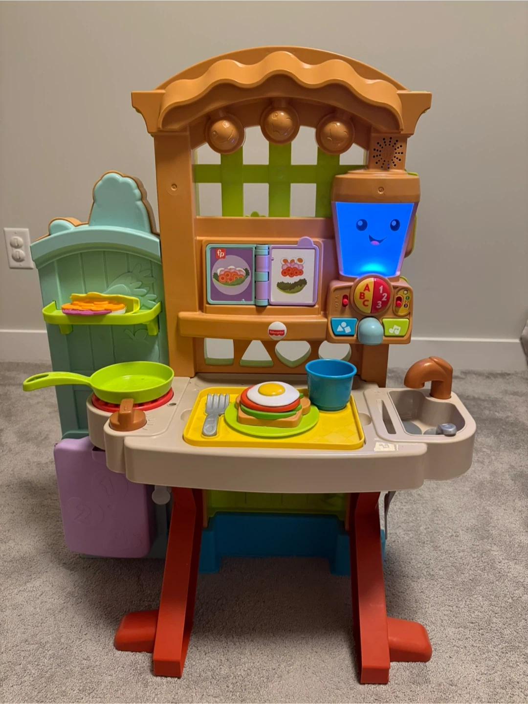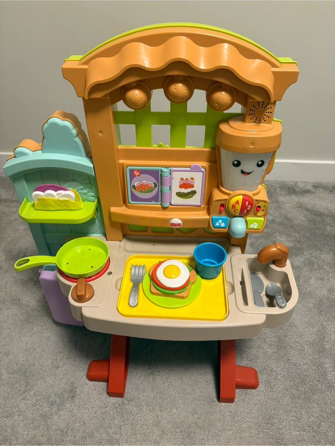 Get ready for some fun with this Fisher-Price Laugh & Learn Grow the Fun Garden to Kitchen. It's in excellent like new condition and ready for a new little one to enjoy. This interactive kitchen/garden has lots of fun features and accessories for hours of imaginative play!