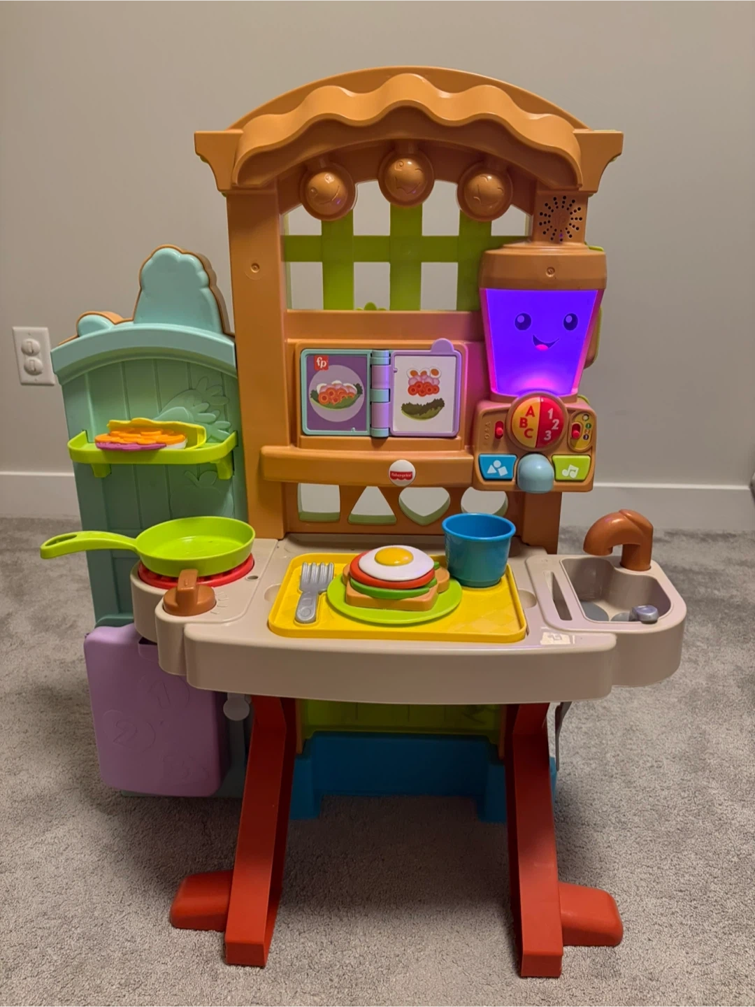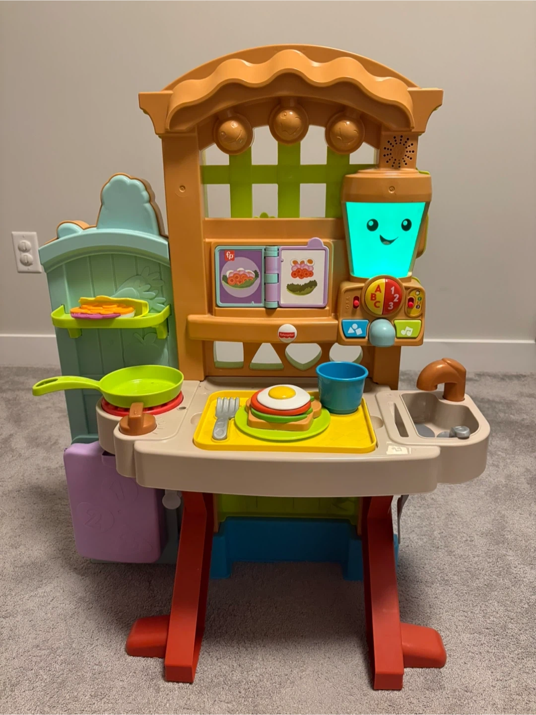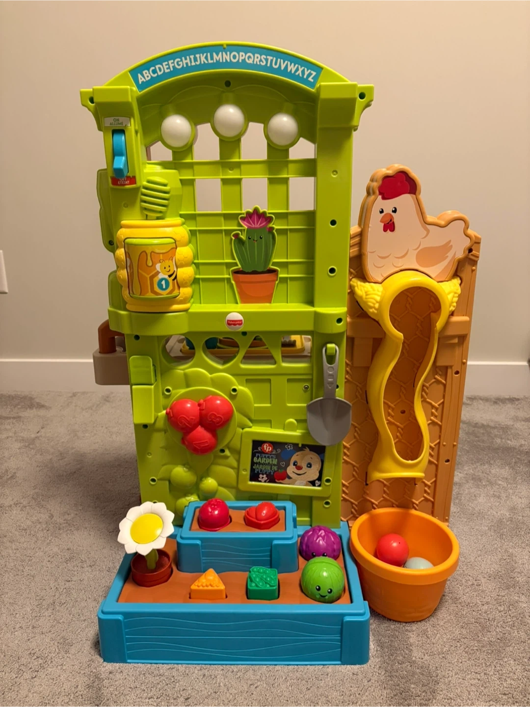 Get ready for some fun with this Fisher-Price Laugh & Learn Grow the Fun Garden to Kitchen. It's in excellent like new condition and ready for a new little one to enjoy. This interactive kitchen/garden has lots of fun features and accessories for hours of imaginative play!