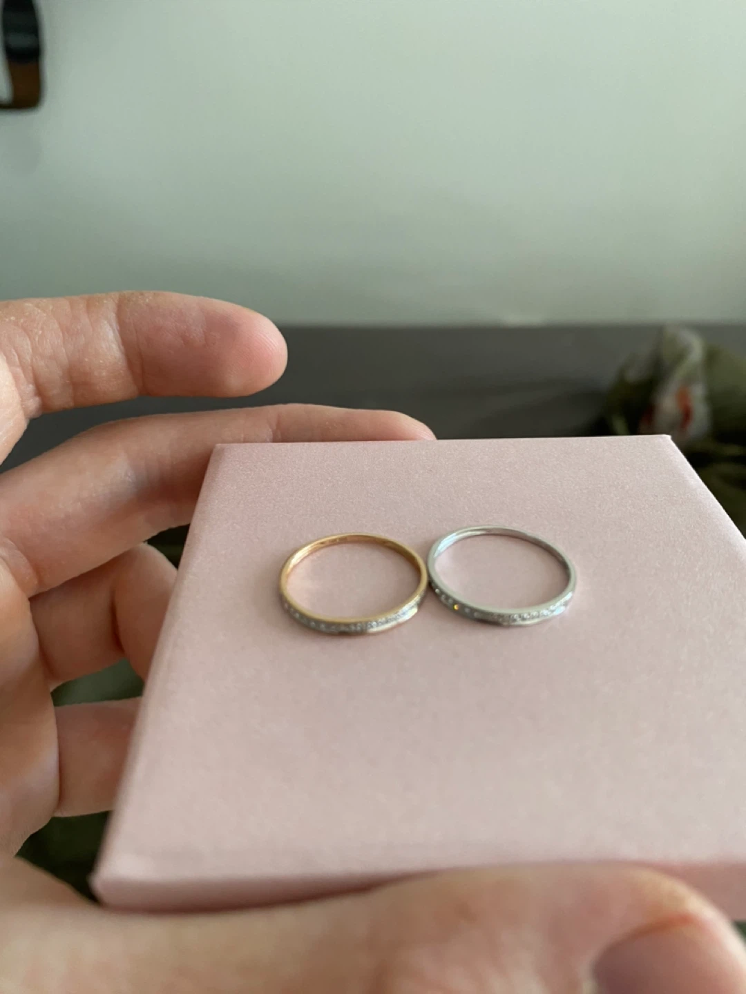 1 / 51 / 5Buy & SellTwo 14K Gold rings with diamondsTwo 14K Gold rings with diamonds$270Beautiful rose and white gold rings. Solid 14K gold with small diamonds 175 each or 350 for bothConditionNewWHERE TO MEETCheck LocationView MapSELLERverifiedHarrisonHumewood24317 reviews29 chats·21 favorites·1039 viewsSEND CHAT TO SELLERHi Harrison! I’m interested in your listing.Hi Harrison! I’m interested in your listing.Get the Karrot app to chatSign In to chat