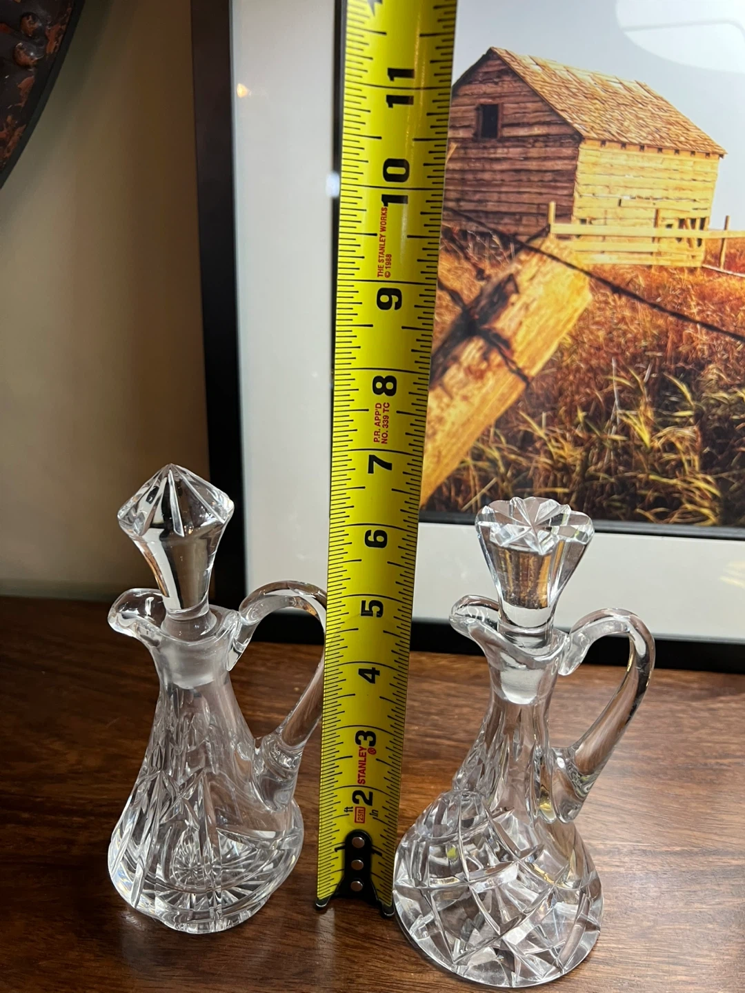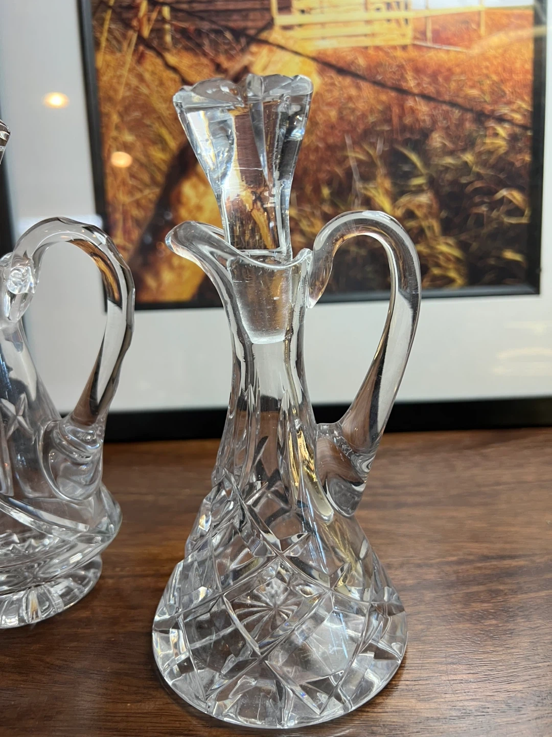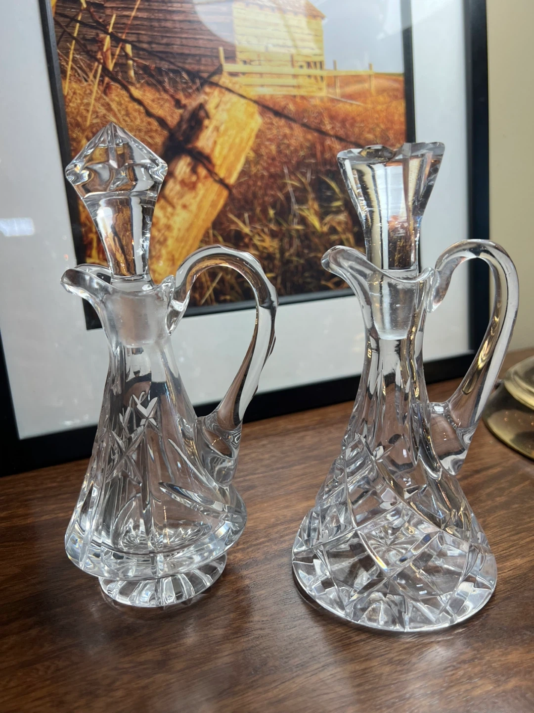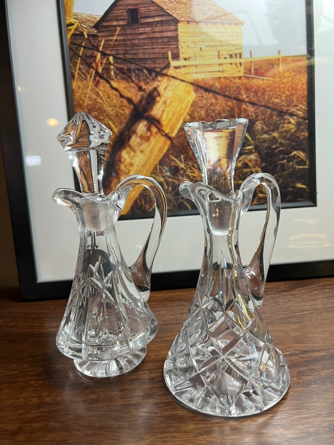 579Set of 2 Typically used for holding oil, vinegar, salad dressing etc… Elegant addition to your table setting or your kitchen! Excellent condition Measurements in the photo Asking $20 for the set/Sold as a set In? Message me and please check my other listings…