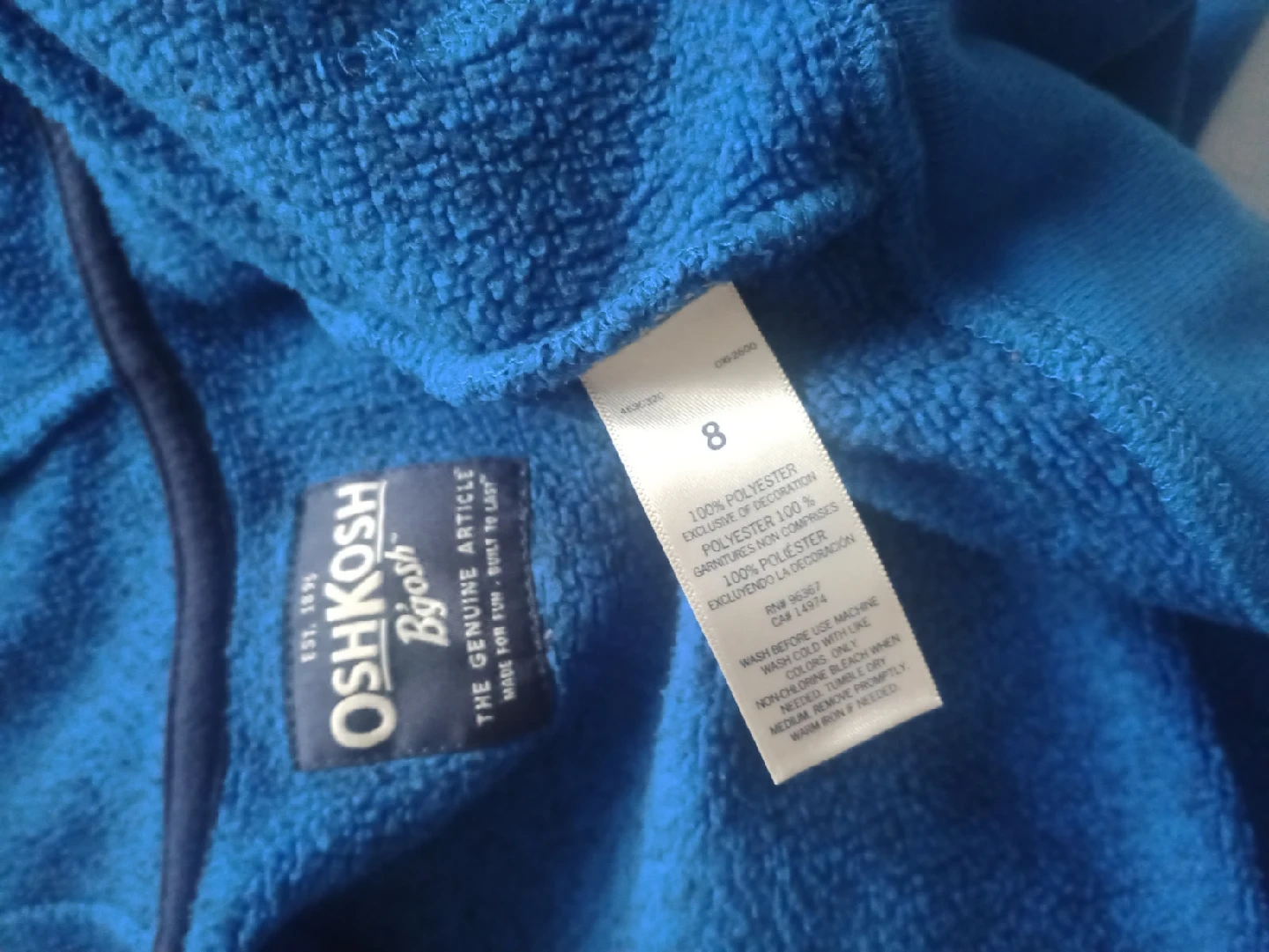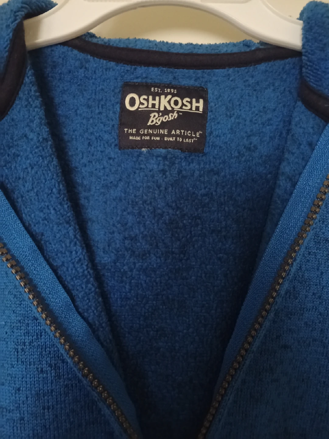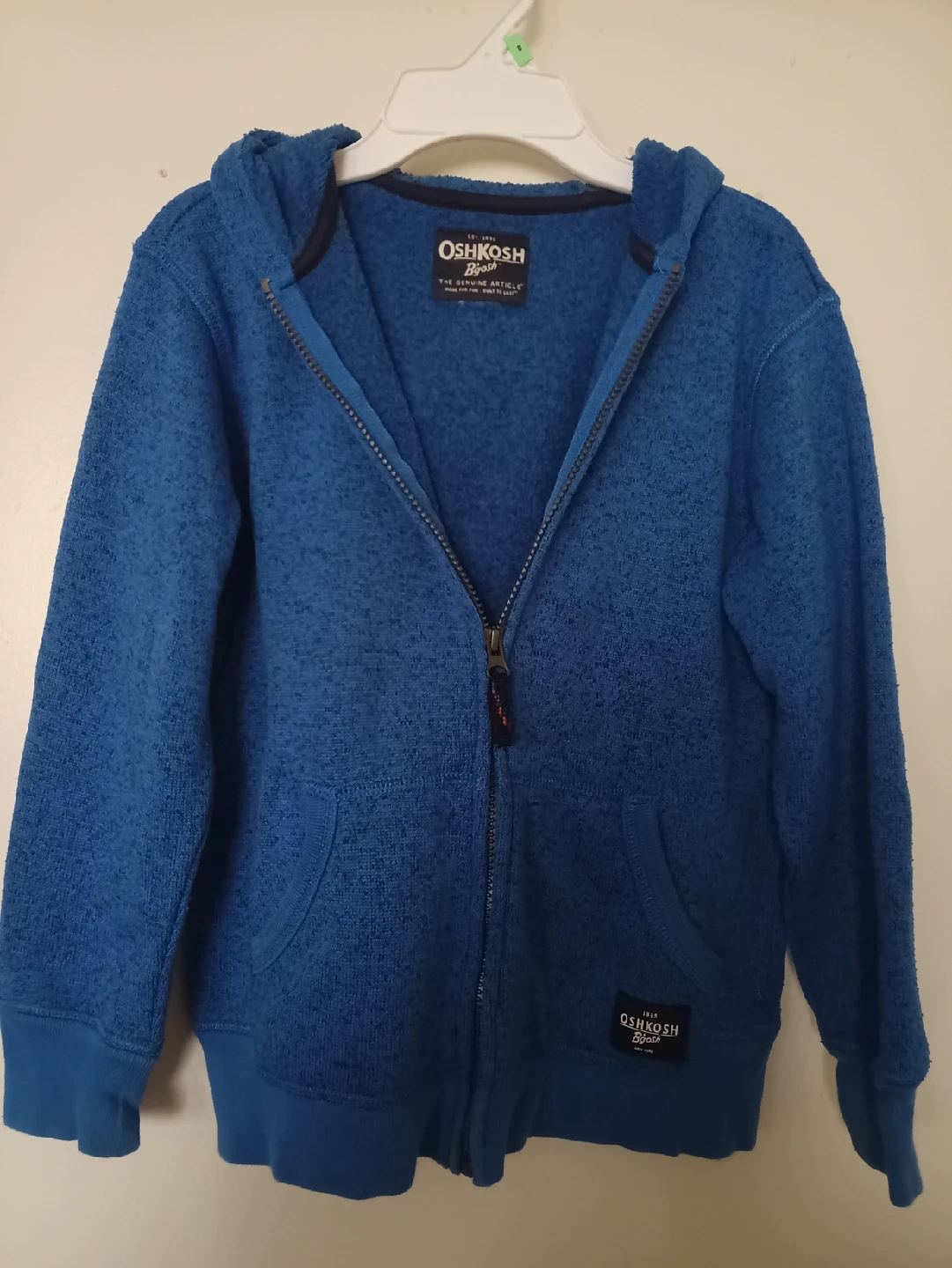 Selling a cozy OshKosh B'gosh zip-up hoodie in blue! It's in great condition and perfect for layering. The hoodie features a full zip closure and two front pockets. It's a genuine article made for fun and built to last!