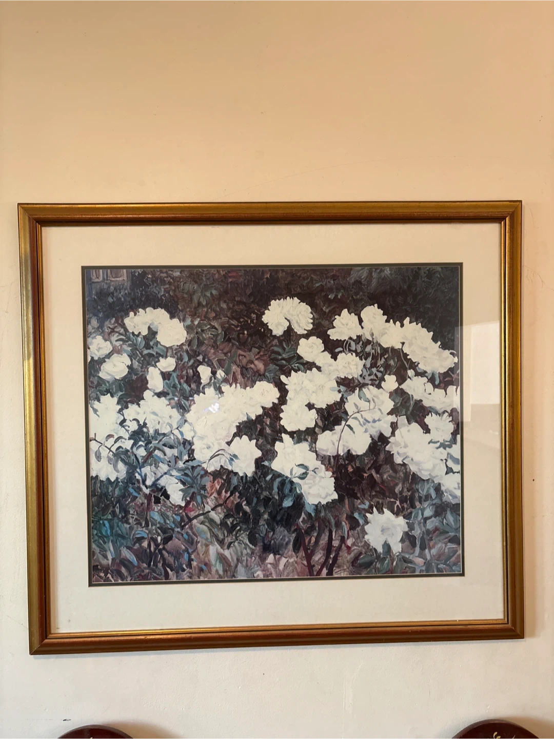 56Here's a framed floral print, perfect for adding a touch of nature to your home. The frame is a lovely gold colour.