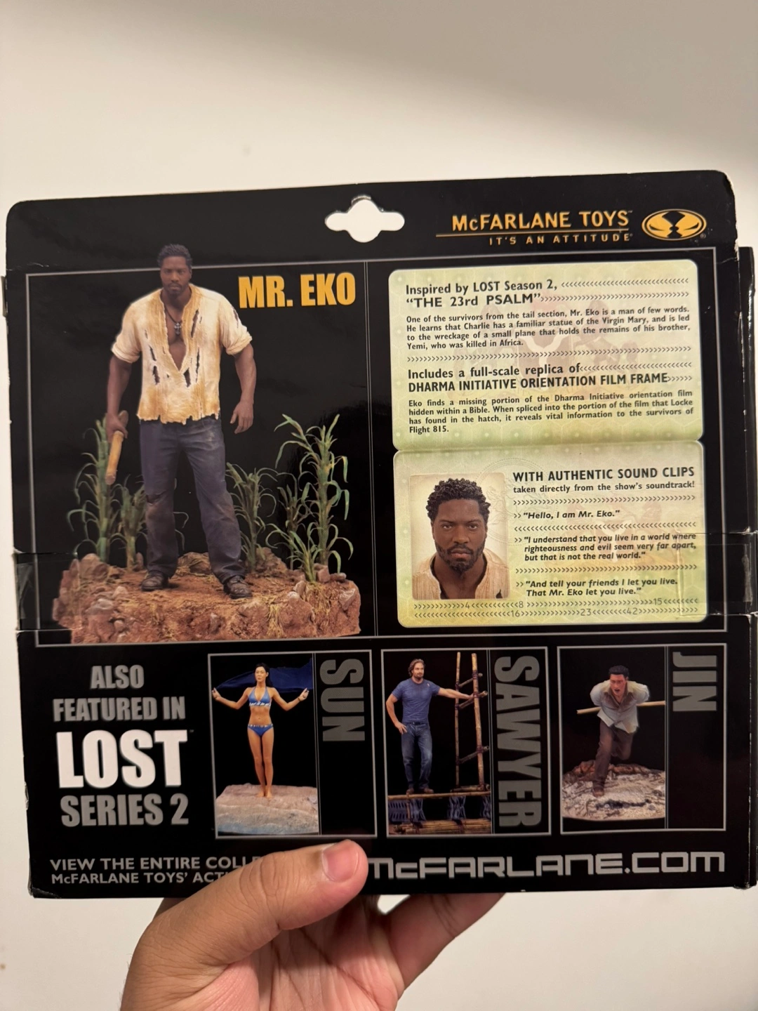 Selling a LOST Mr. Eko Series 2 action figure by McFarlane Toys! It's in great condition and comes in its original packaging. A must-have for any LOST fan!