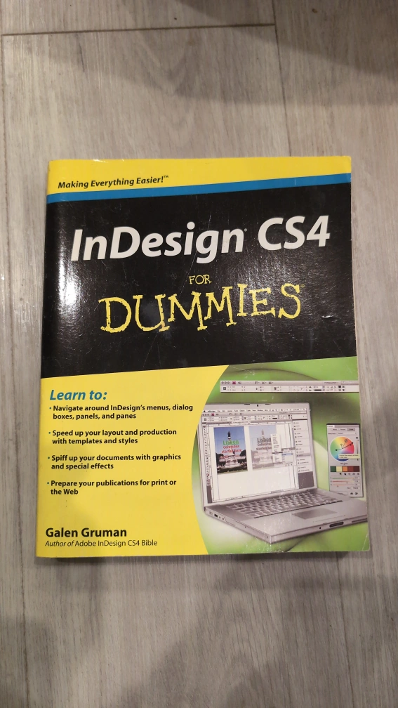 86Selling a copy of "InDesign CS4 for Dummies" by Galen Gruman. This book will teach you to navigate InDesign's menus, speed up your layout and production, and prepare your publications for print or the Web