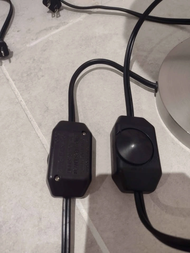 106Set of two high quality table lamps. Very sturdy and well built, they are quite heavy for their size. The bulb cover and lampshade are frosted glass. The dimmer wheel is very sensitive, the light is adjustable from a very dim soft amber to a bright white and anywhere in between! The lamps are just under 22 inches tall. These are the best table lamps I have ever owned but unfortunately they do not suit my new bedroom. Selling as a set of two, open to offers and trades. Pickup by Donlands station.