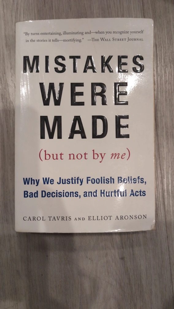 86Selling the book 'Mistakes Were Made (but not by me)' by Carol Tavris and Elliot Aronson It explores why we justify foolish beliefs, bad decisions, and hurtful acts