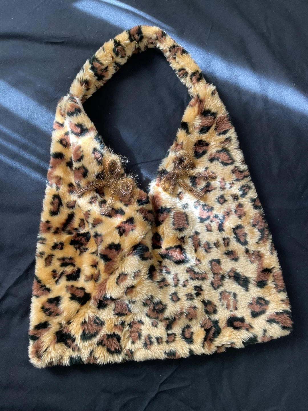 Selling a super cute leopard print shoulder bag! It's made of a soft faux fur material and is in great condition. Perfect for adding a fun touch to any outfit