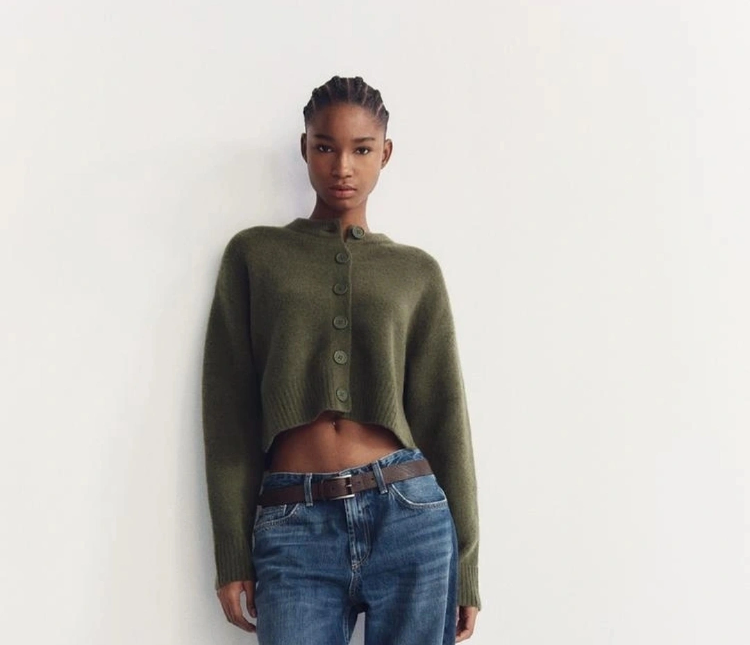 Selling a Zara knit cardigan in a lovely olive green colour! It's a stylish and cozy piece, perfect for layering. Great for adding a touch of warmth and style to any outfit during fall.