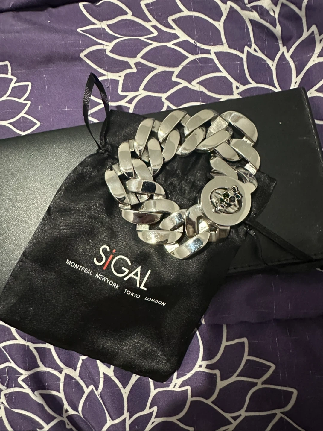 Sigal bracelet featuring a chunky chain design with a skull detail, stainless steel Comes with the original Sigal pouch. Perfect for adding an edgy touch to your outfit! Brand new, never worn. Smoke free home.