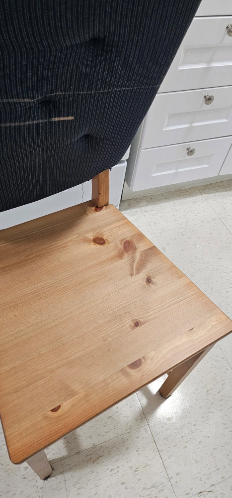 Selling an IKEA IVAR chair! It comes with a comfy cushion. The chair is made of solid wood and the cushion is a stylish dark grey with subtle stripes. It's in good condition and ready for a new home
