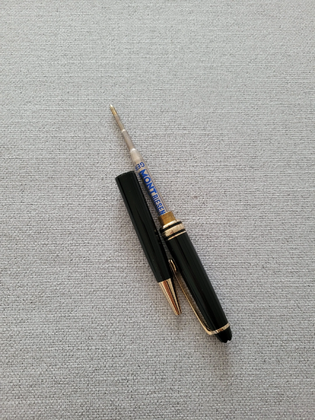 No box because my dad bought it a long time ago in Japan. Selling a Montblanc Meisterstück Classique ballpoint pen. It's in great condition but you need to get the ink! Features a black precious resin barrel and gold-plated details, giving it a classic and elegant look. The Montblanc emblem adds a touch of sophistication. I will not reply to unfair negotiations.