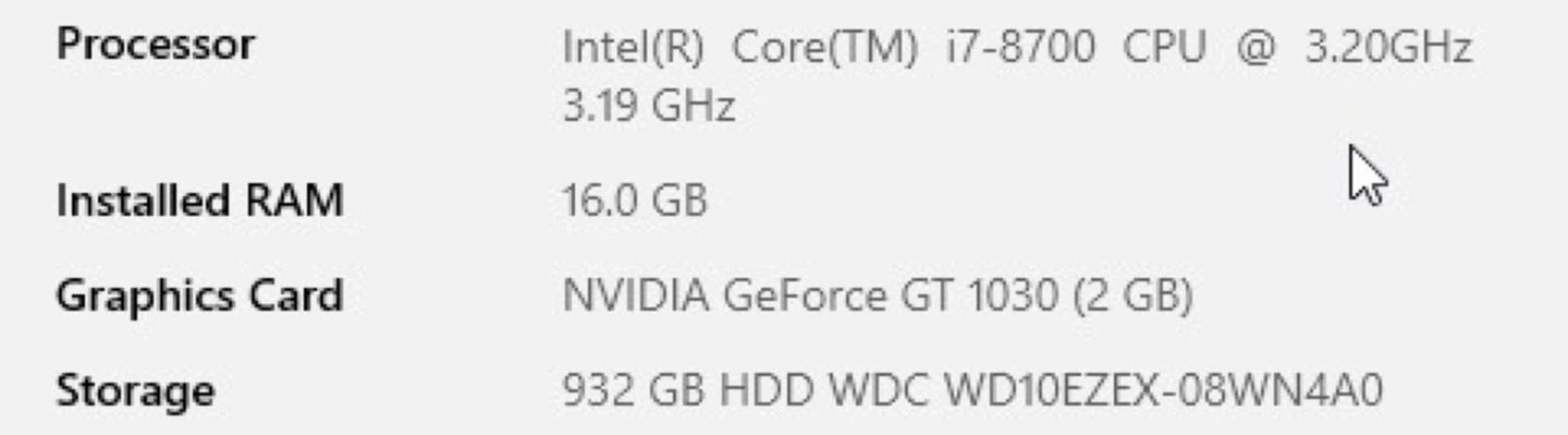 Intel(R) Core(TM) i7-8700 CPU @ 3.20GHz