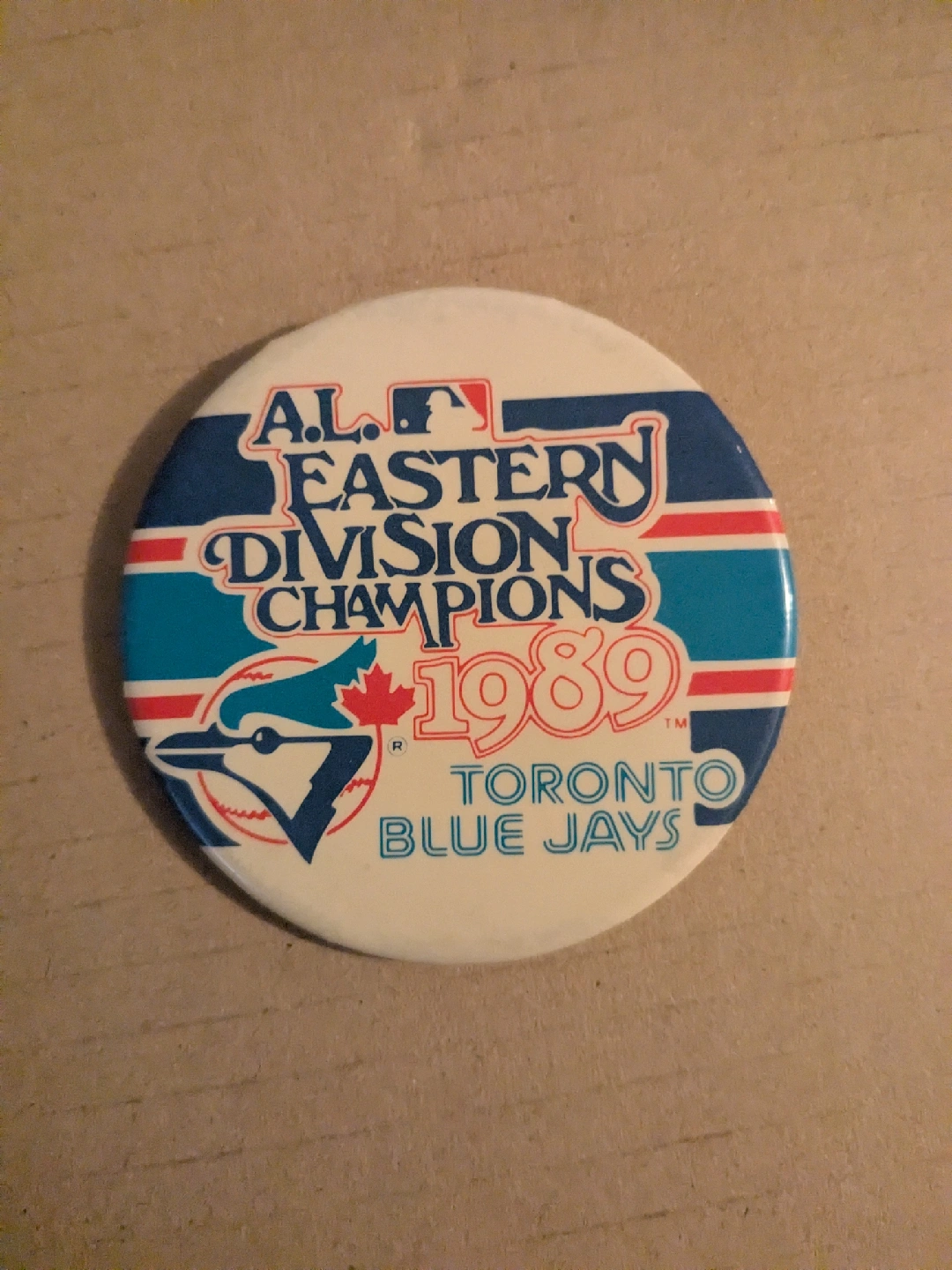 Selling a vintage Toronto Blue Jays pin from 1989, commemorating their A.L. Eastern Division Championship! A cool piece of memorabilia for any Jays fan or collector of sports history