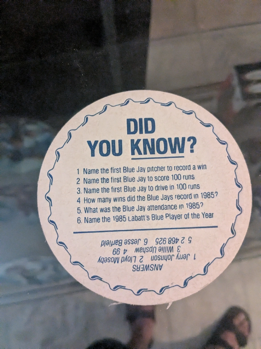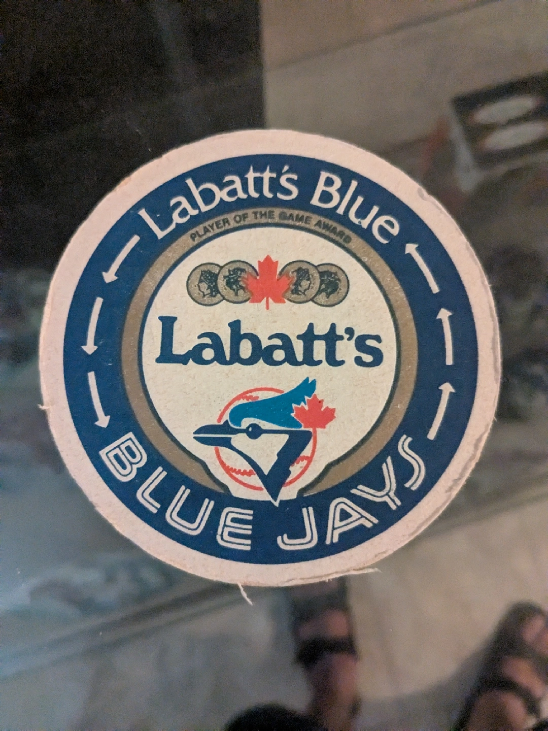 Selling a Labatt's Blue Jays coaster! It's a fun piece of memorabilia with a Blue Jays logo and a 'Did You Know?' section with trivia about the team