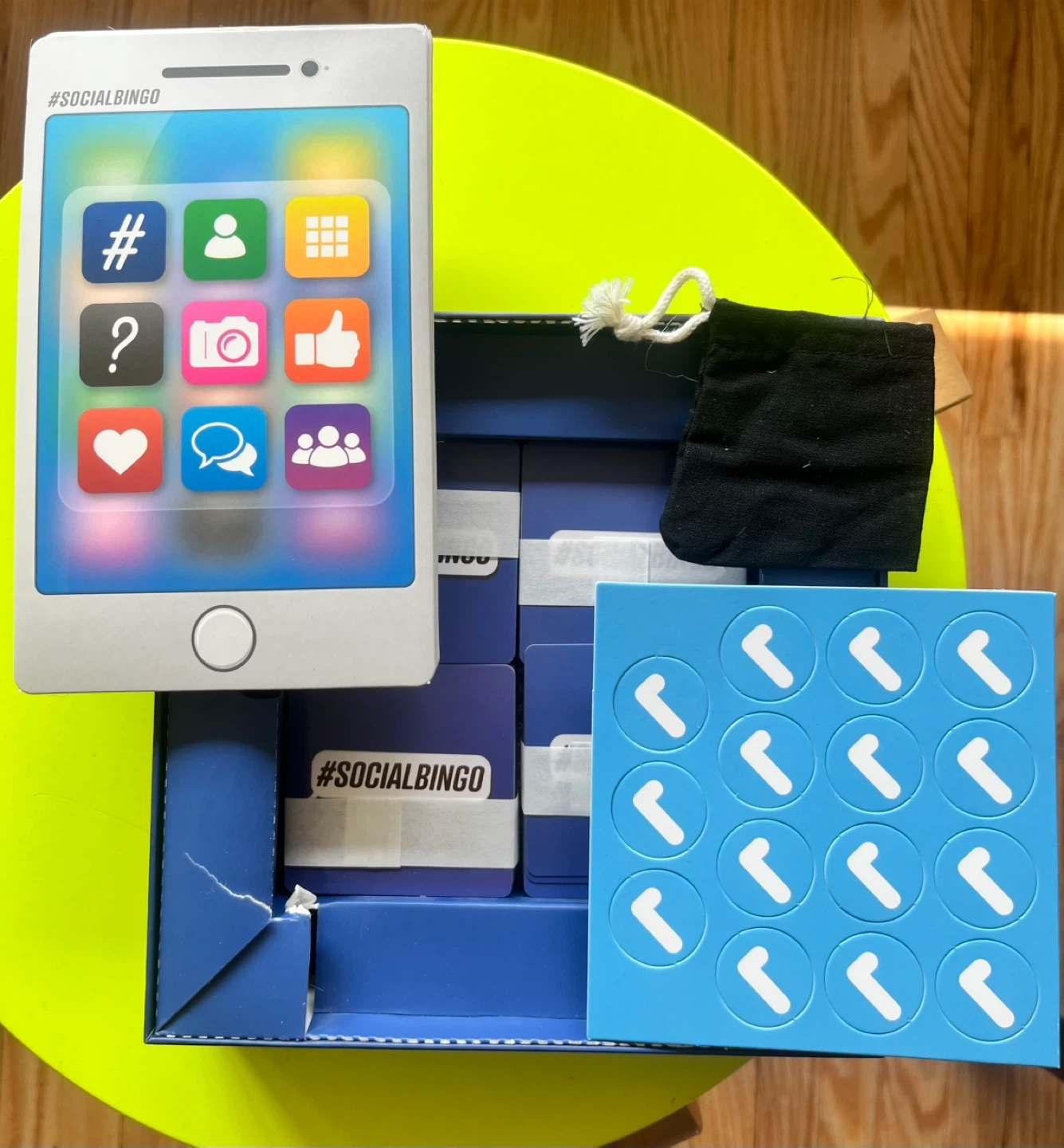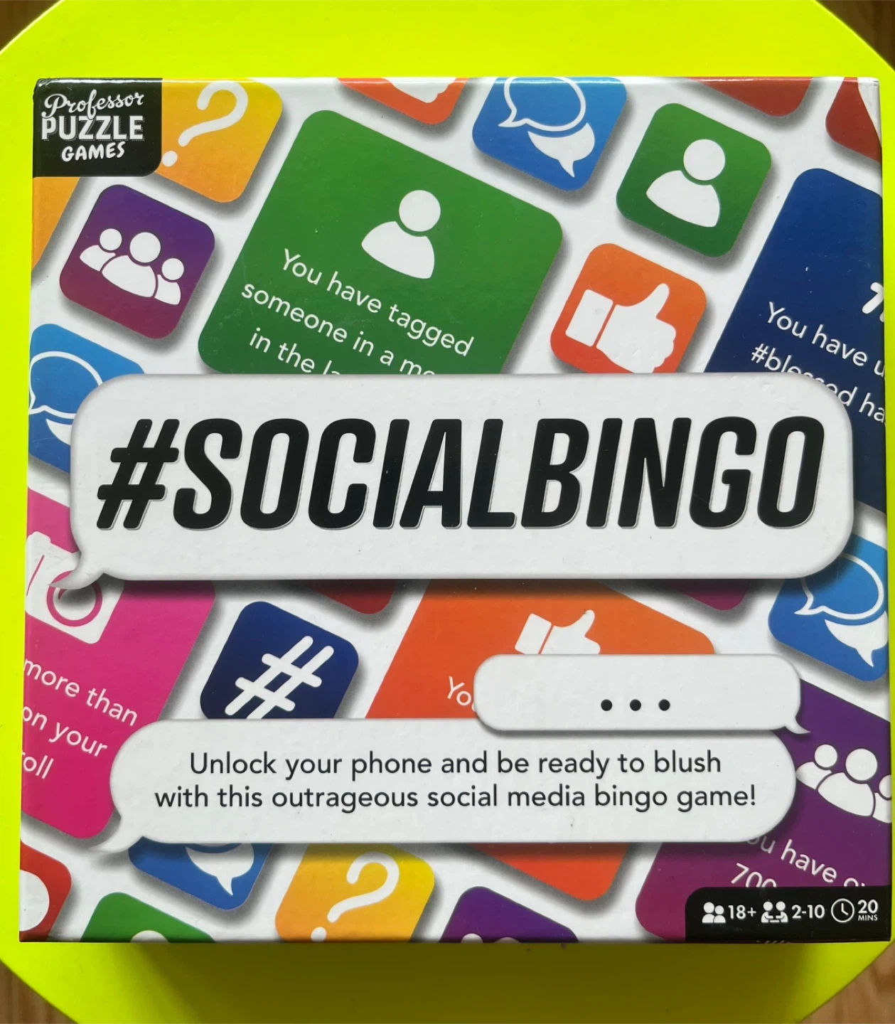 80A Professor Puzzle #SocialBingo game! It's a fun social media bingo game for 2-10 players, ages 18+. Unlock your phone and be ready to blush with this outrageous game! Perfect for game nights with friends. Please pick up.