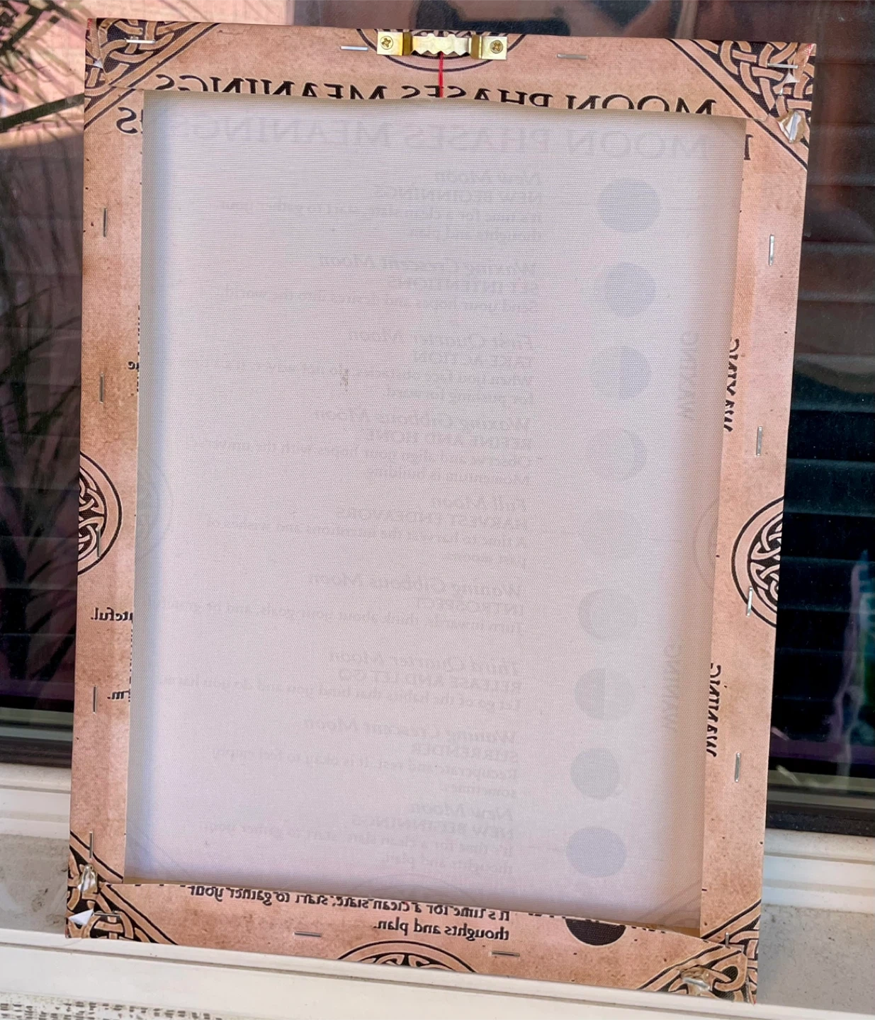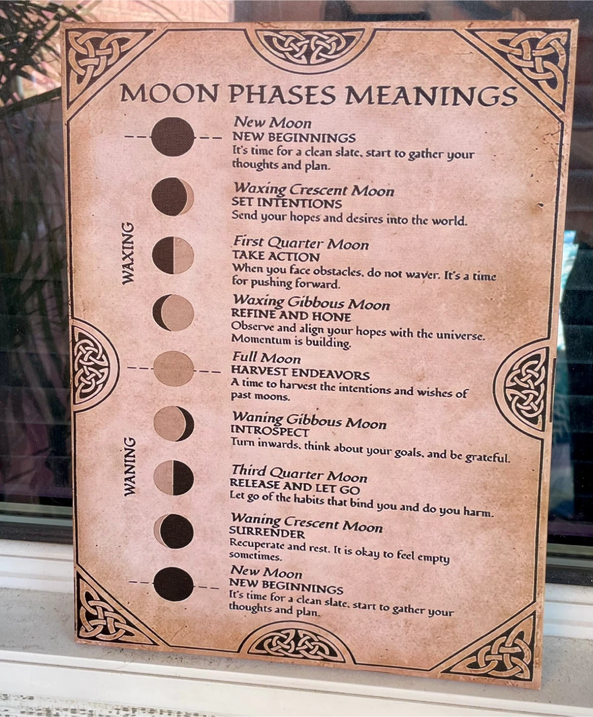246I'm selling a canvas wall art print that depicts the moon phases and their meanings. It would be great for anyone interested in astrology or lunar cycles! 13 / 10inches.