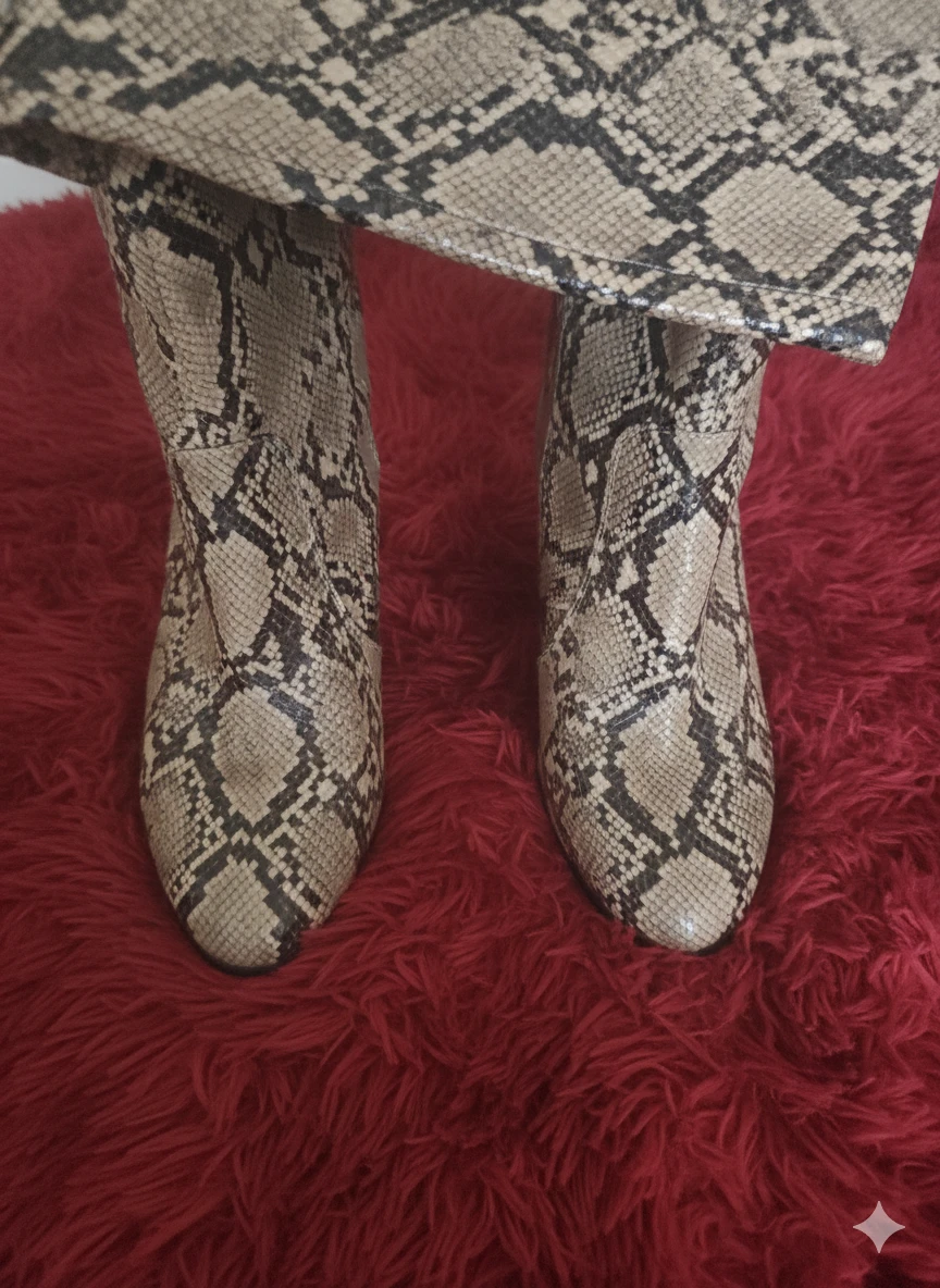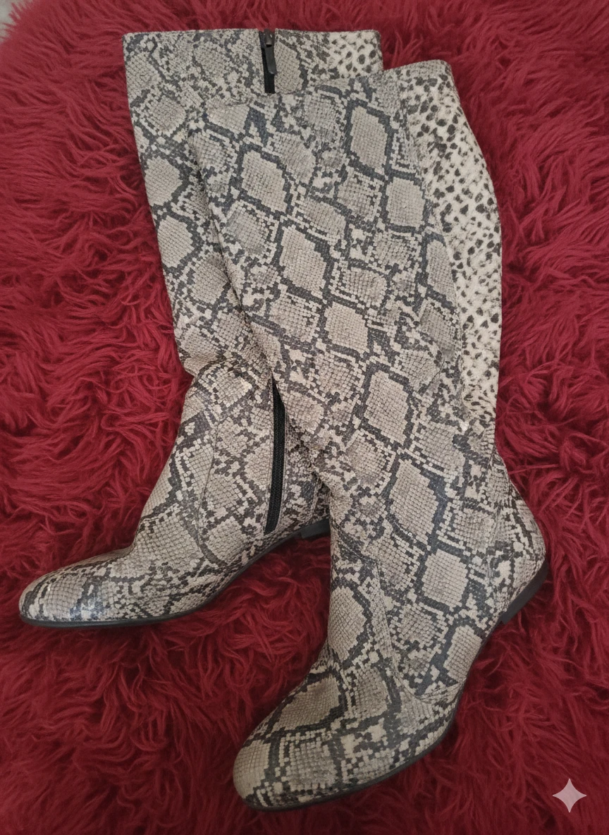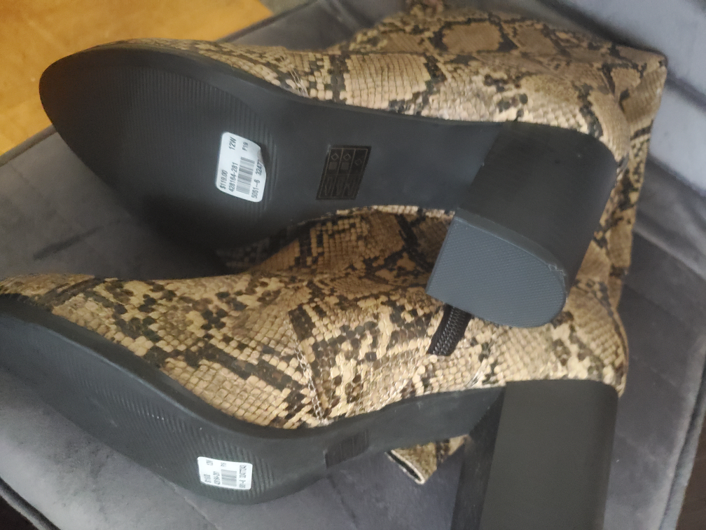 Selling a pair of Penningtons heeled boots with a snakeskin pattern! They're NEW condition and are a women's size 12W