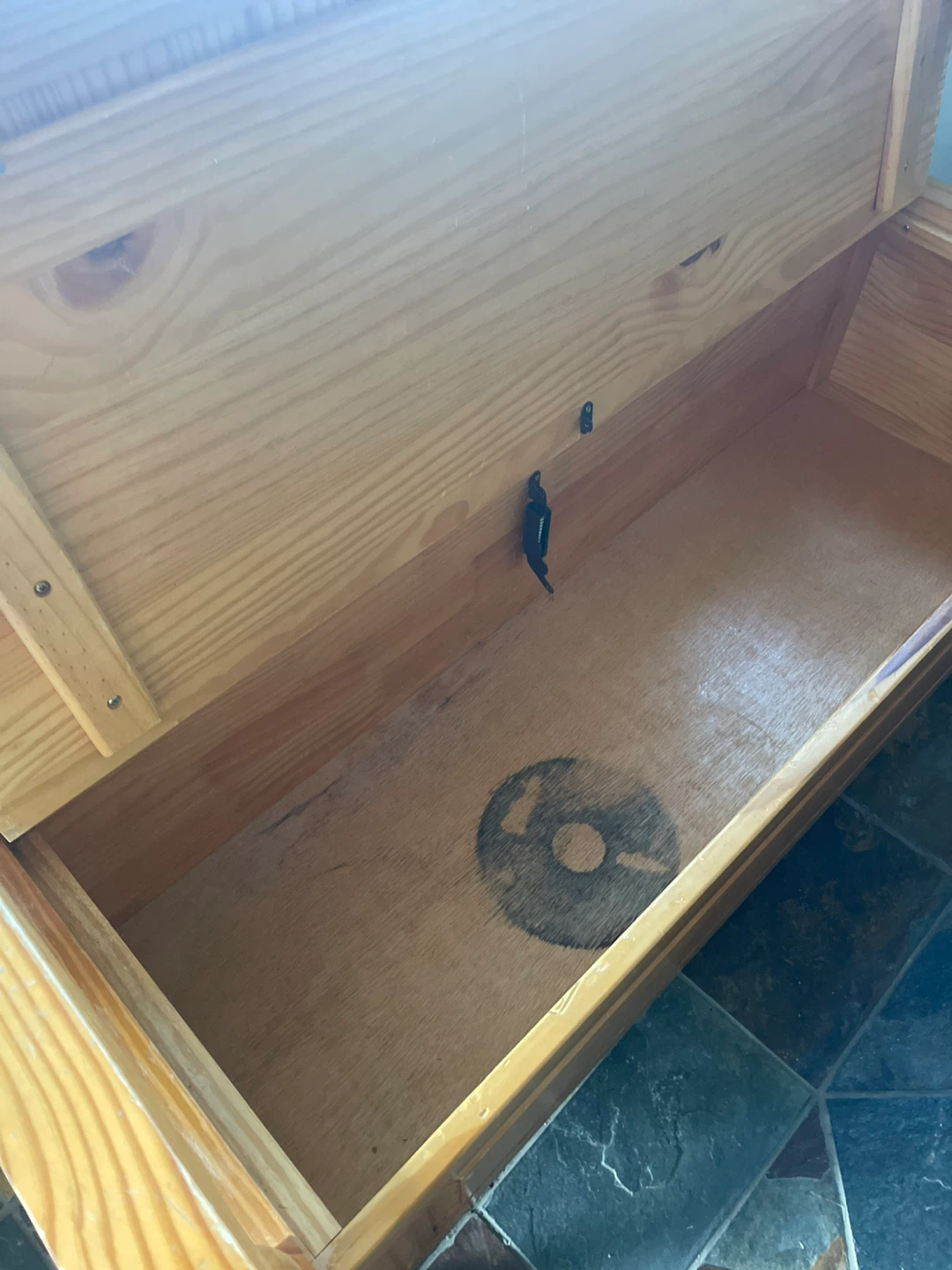 Does have a darkish round stain INSIDE bench .