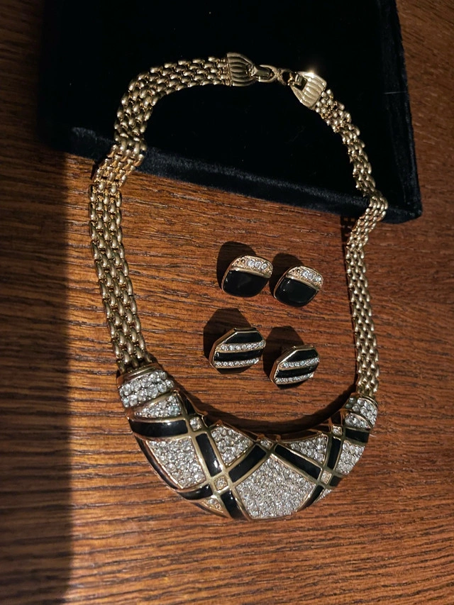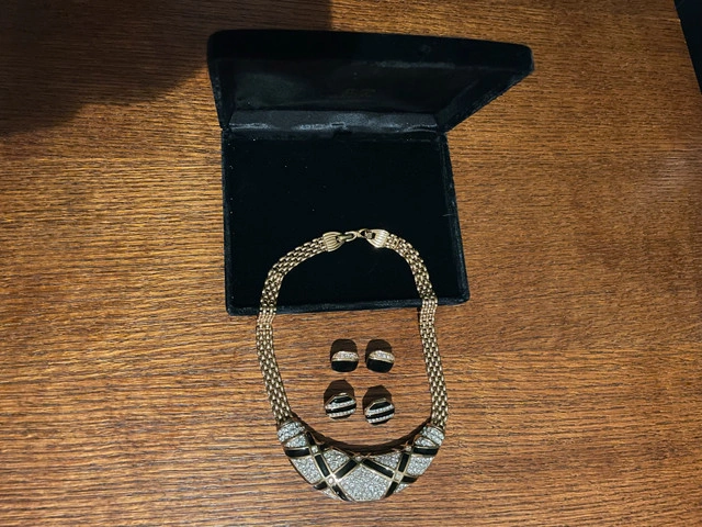 Beautiful Nina Ricci black and gold jewelry set with a necklace and two pairs of earrings. In excellent condition from a smoke free home. For Sale By: Owner