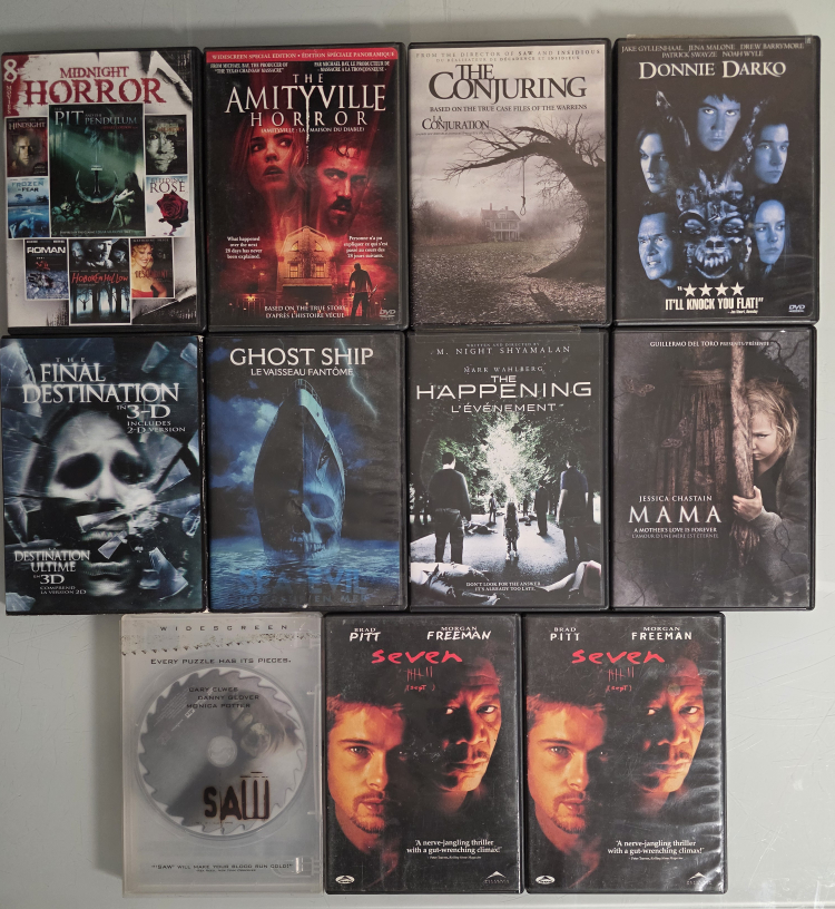 DVDs, including a variety of genres like horror, action, Drama, Kids and comedy.