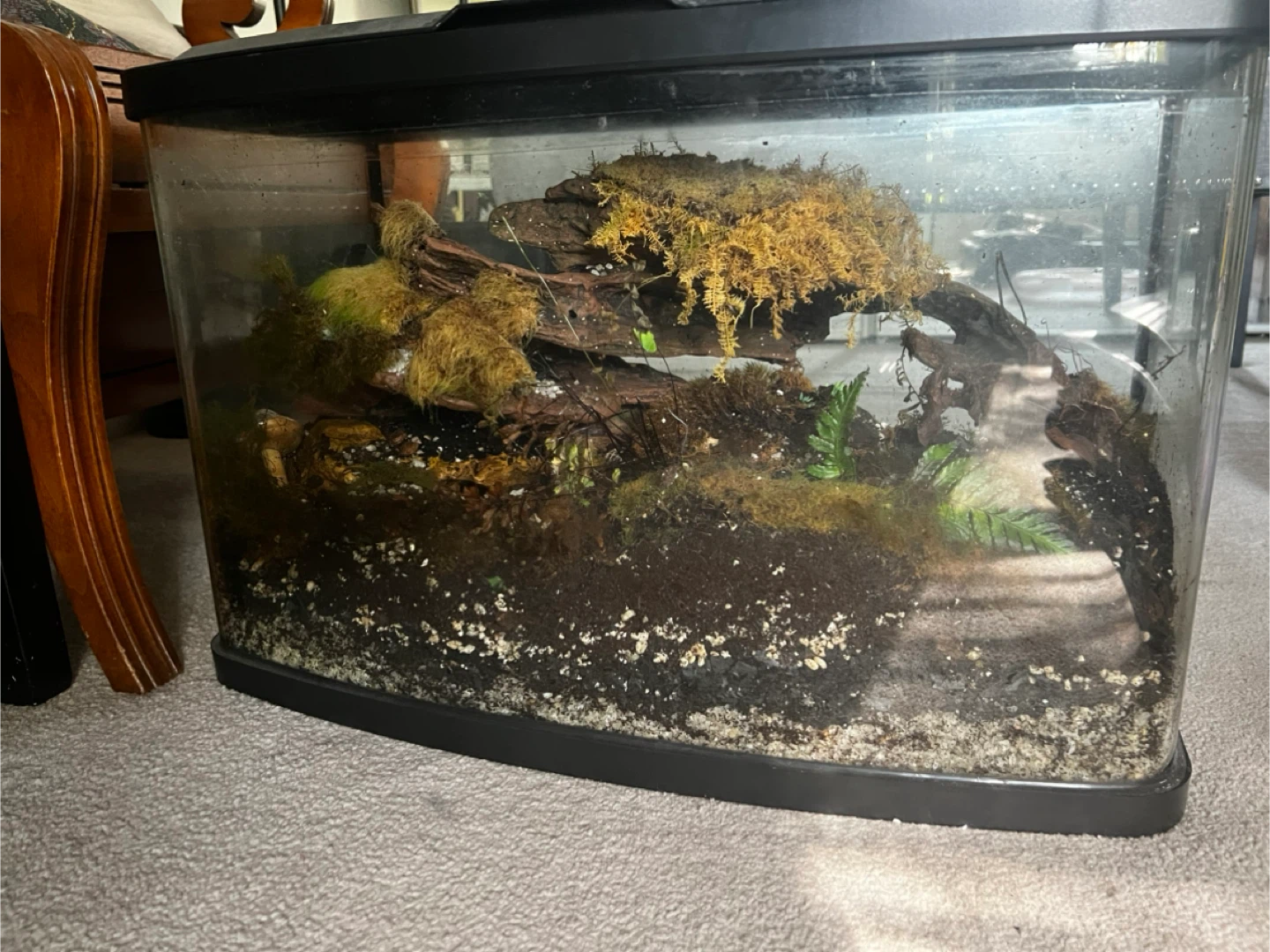 Looking for someone who's willing to add some plant life and revive this once happy little ecosystem! All you need is fresh moss, a few more plants and you can add insects to it as well for it to be self sustaining- there are specific ones you add- I can tell you where we bought our plants and insects for terrariums are there as well)