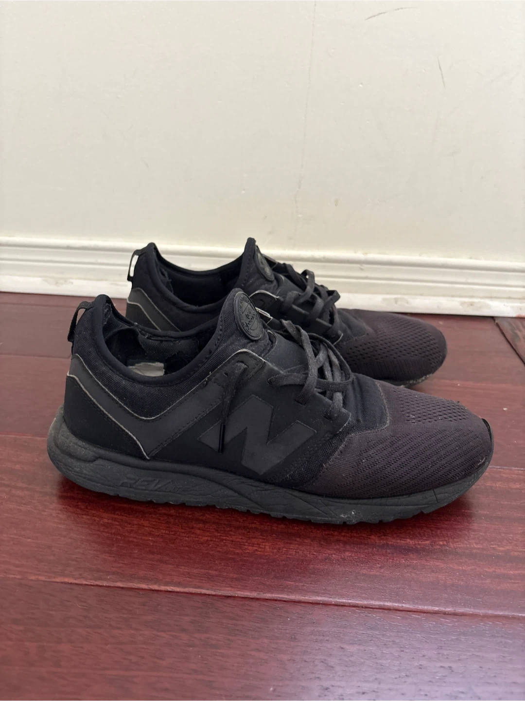 270New Balance 247 Black Sneakers Size: 10.5 Condition: 3/10 If cleaned, stitched and bough insoles pretty decent