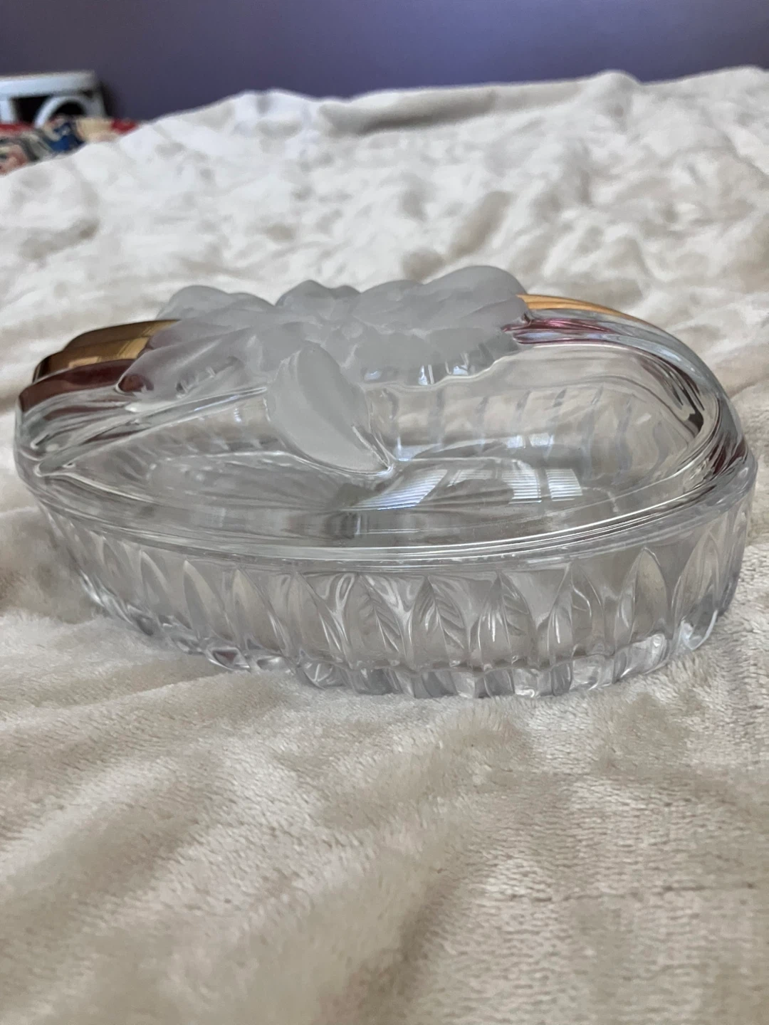 29Selling a beautiful Ivonne crystal trinket dish with a lid. It features a lovely floral design and gold accents. It's perfect for storing jewelry or small keepsakes on your dresser or vanity! Brand new in box. Perfect for gifting.