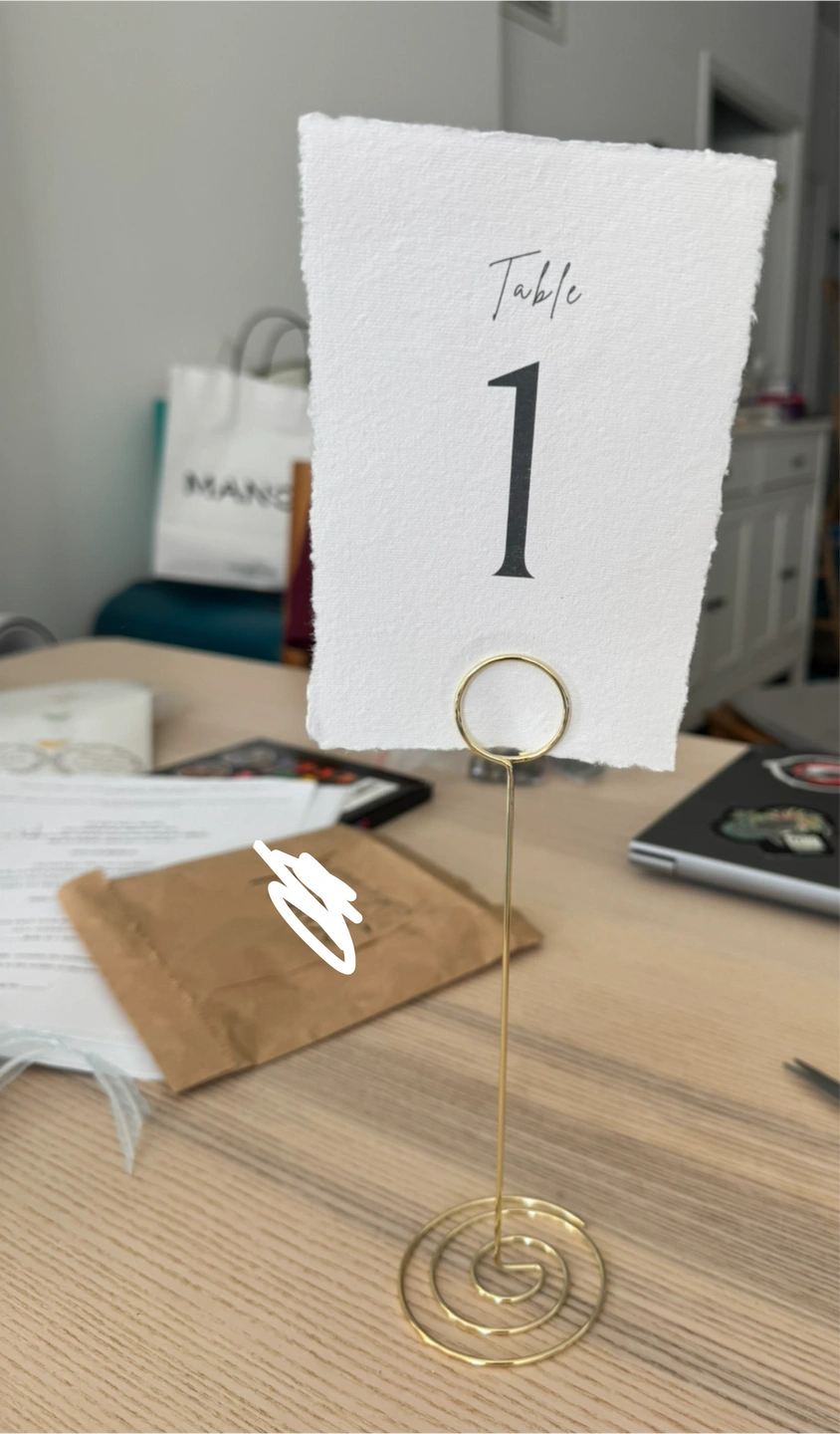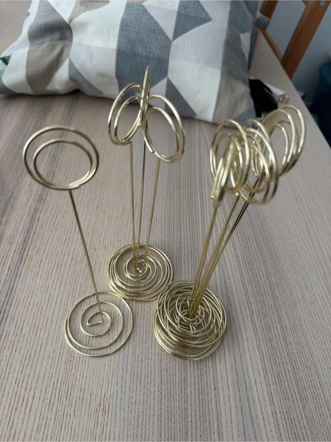 Selling 10 gold table number holders! These are perfect for weddings, parties, or any event where you need to display table numbers or names. They add a touch of elegance and are in great condition