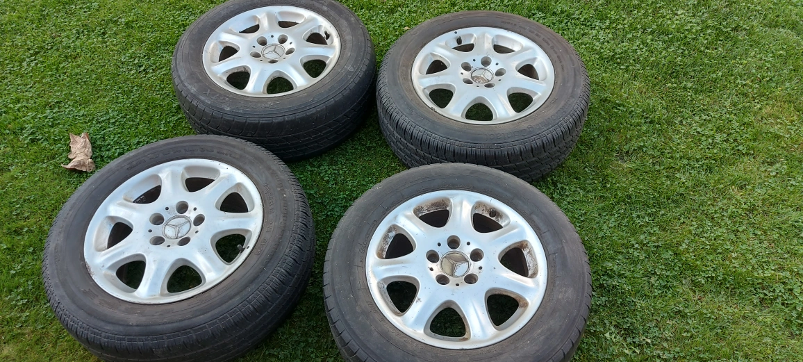 Selling a set of four Mercedes-Benz wheels with tires. They're in used condition, with some signs of wear, but still have plenty of life left. Perfect for winter tires or a spare set! Rims are good .Tires are no good.