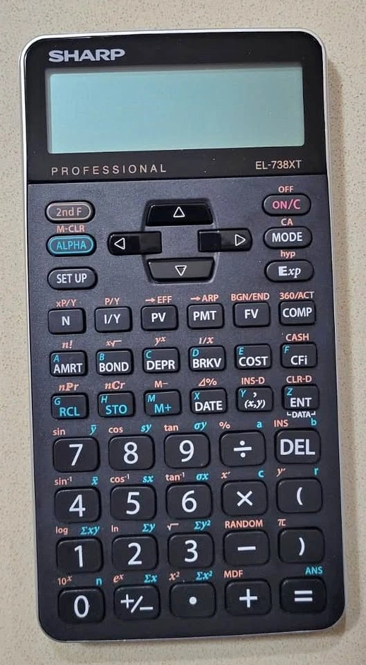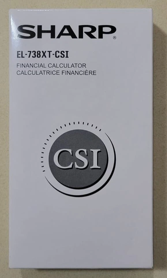 86Brand new Sharp EL-738XT-CSI Financial Calculator — perfect for finance, accounting, business, and CSI exam preparation. Compact, easy-to-use, and fully approved for Canadian Securities Course (CSI) exams. ✅ Original Sharp model (EL-738XT-CSI) ✅ Dual power: solar + battery backup ✅ Includes protective cover ✅ Features: TVM, amortization, bonds, depreciation, cash flow, interest rate conversions ✅ Made by Sharp Electronics of Canada Never used, box opened only for photos.