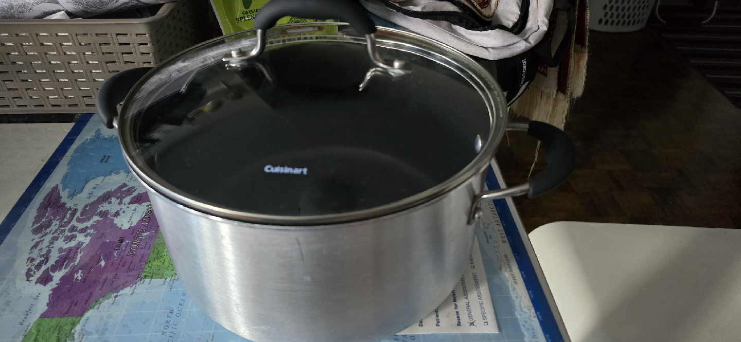 Selling a Cuisinart non-stick stock pot, perfect for making large batches of soup or pasta sauce! It comes with a lid and is in very good condition. The pot measures approximately 9 inches in diameter.