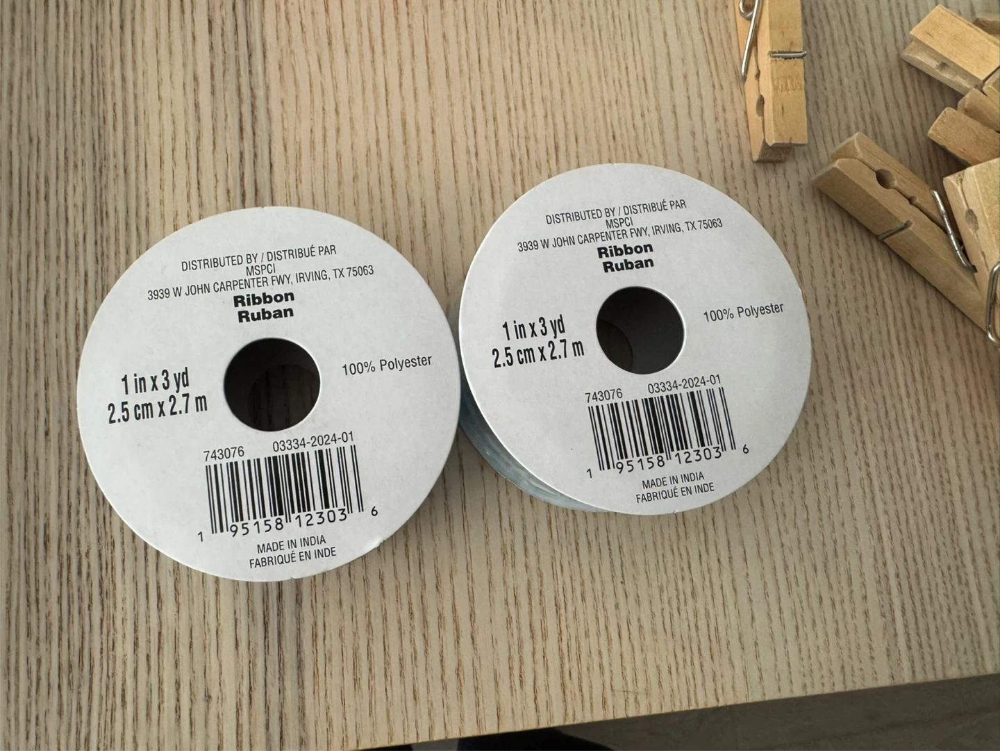 Selling two rolls of Ribbon Ruban! Each roll is 1 inch by 3 yards (2.5 cm x 2.7 m). They are made of 100% polyester. Perfect for crafts, decorations, or gift wrapping.