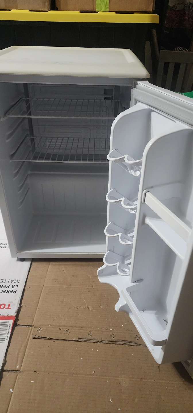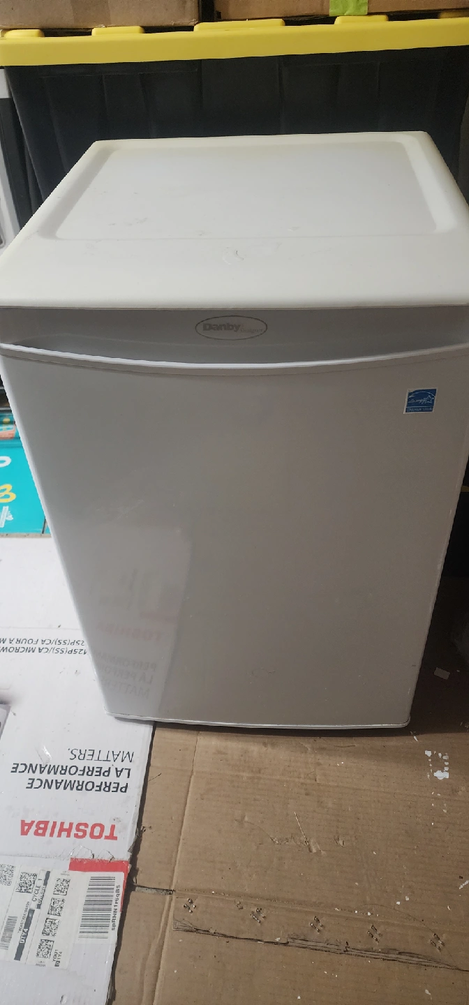 10Selling a Danby Designer compact refrigerator in white. It's in good condition and perfect for a small space like a dorm room or office. It features a wire shelf and storage on the door for bottles and cans. Great for keeping your drinks and snacks cold!