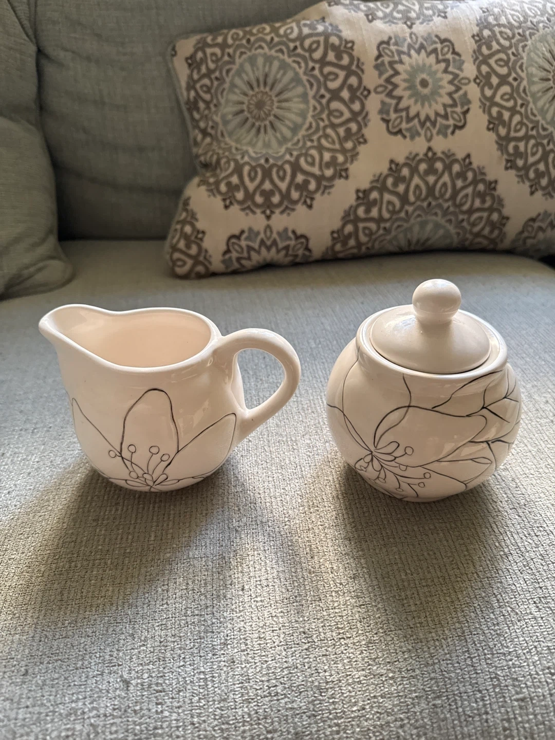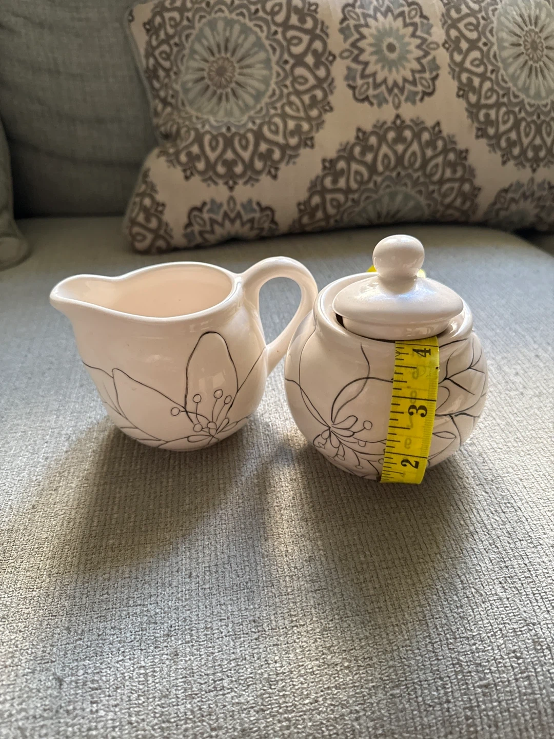 I'm selling a cute creamer and sugar bowl set from Laurie Gates. It's the Anna model and features a delicate floral design. Dishwasher safe for easy cleaning! Smoke-free home.