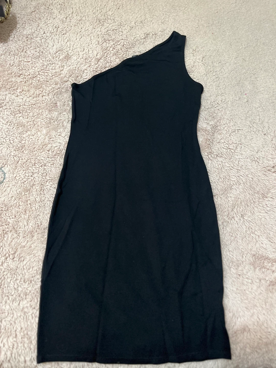 Selling a cute black one-shoulder dress from Forever 21. It's a size Medium, but runs small. Very short and fitted.