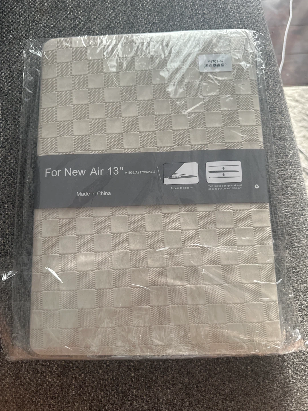 I'm selling a brand new laptop case cover for a New Air 13" laptop! It has a two-piece design that's easy to put on and take off, and it allows access to all ports. It's designed to fit your MacBook perfectly and protects it against scratches and scuffs. It's thin and light, ensuring your MacBook stays light on its feet