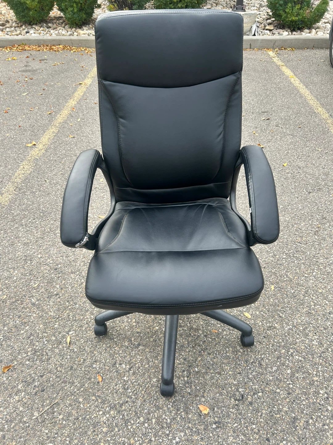 Selling a black office chair! It's in good condition and ready for a new home office or workspace. The chair is comfortable and has a classic design.