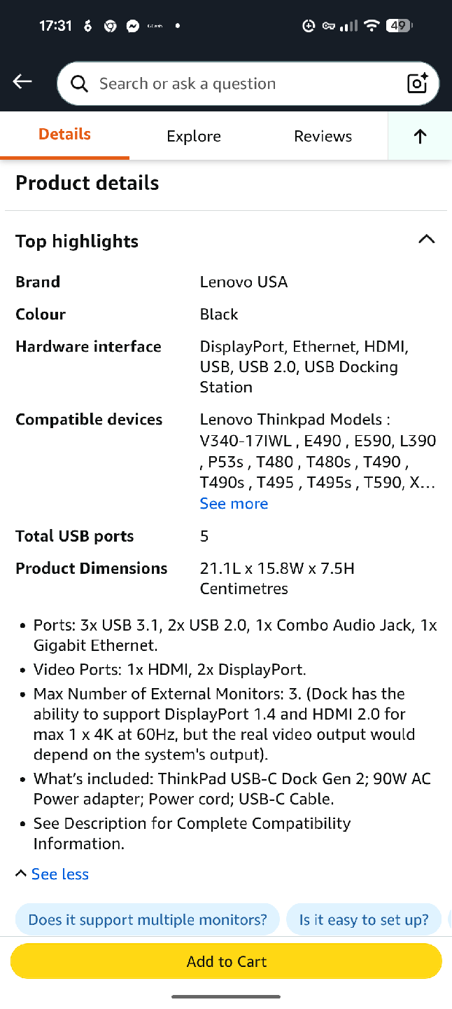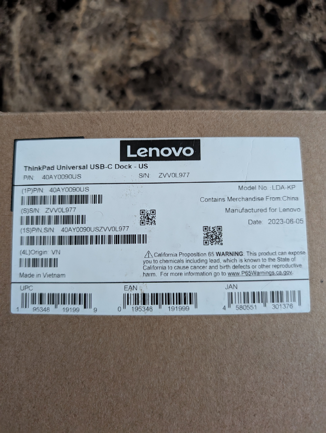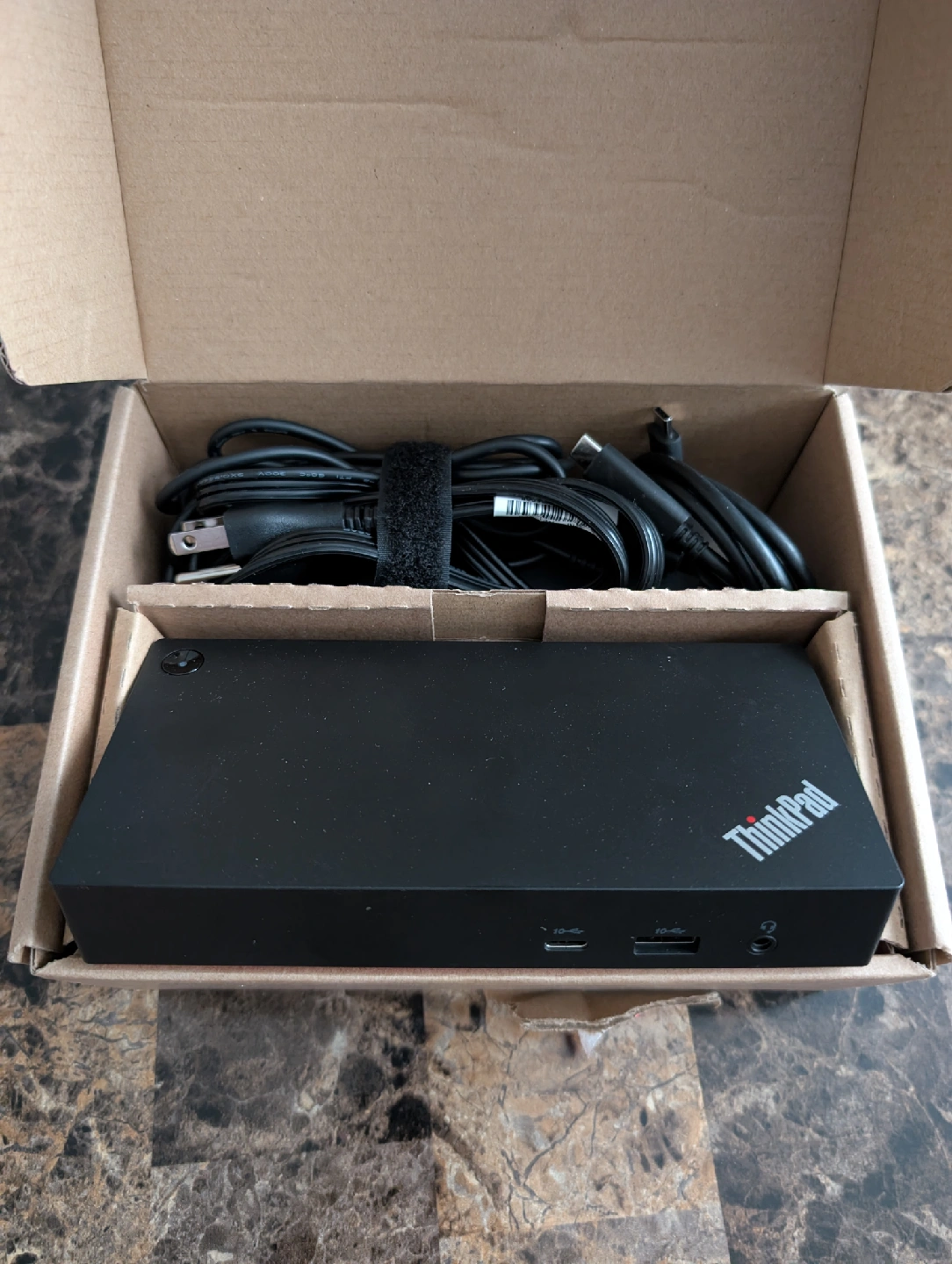 Selling a Lenovo ThinkPad Universal USB-C Dock - US. This dock is in excellent condition and comes with all the original components, including the power cord and USB-C cable.