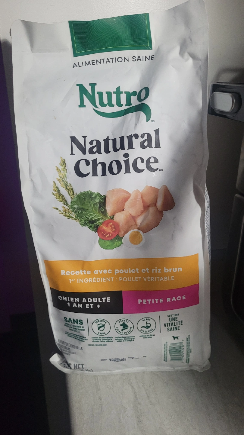 Selling a bag of Nutro Natural Choice adult dog food. It's a natural dog food with vitamins, minerals and other nutrients. dry food