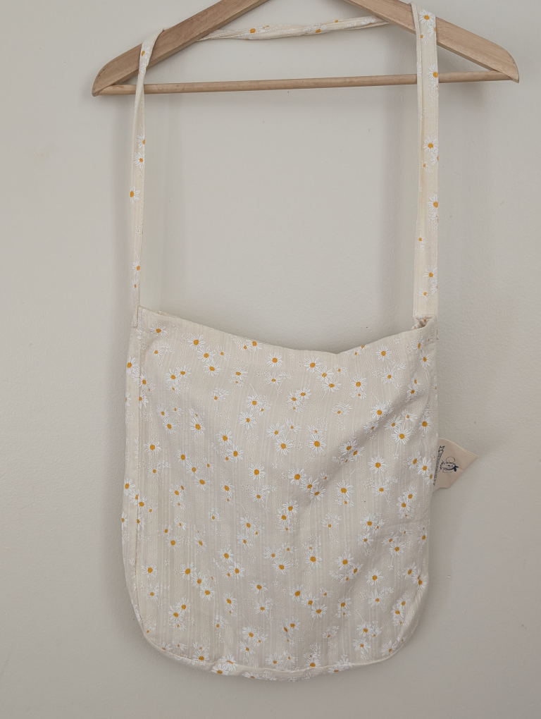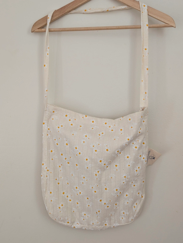 Here's a cute shoulder bag with a daisy print! It's perfect for carrying your everyday essentials. The bag is in great condition and ready for a new home. Bought it from Etsy.