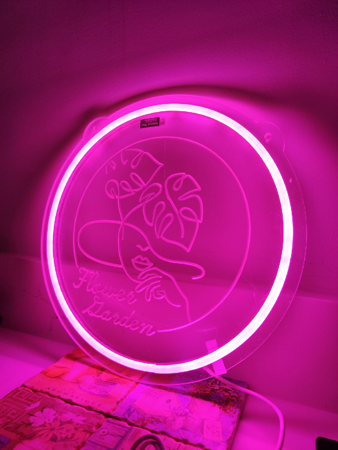 185Add a touch of whimsy to your space with this eye-catching Flower Garden neon sign! The design features a woman's face with a hat and monstera leaves, all illuminated in a vibrant pink glow. Perfect for adding a pop of colour to any room