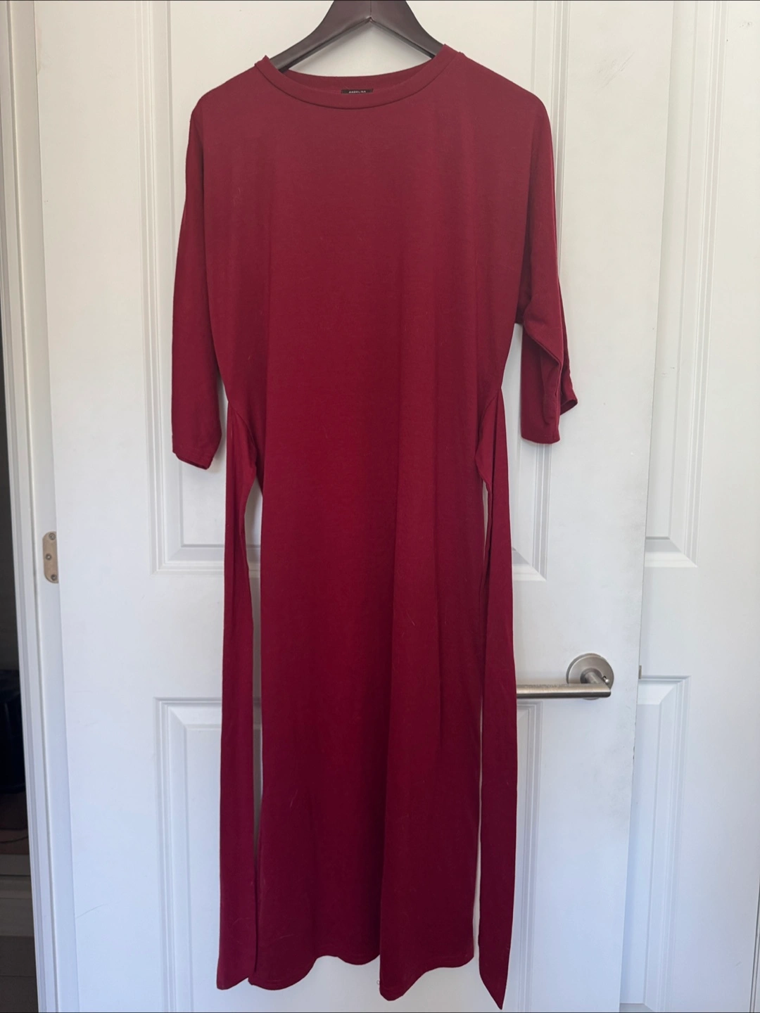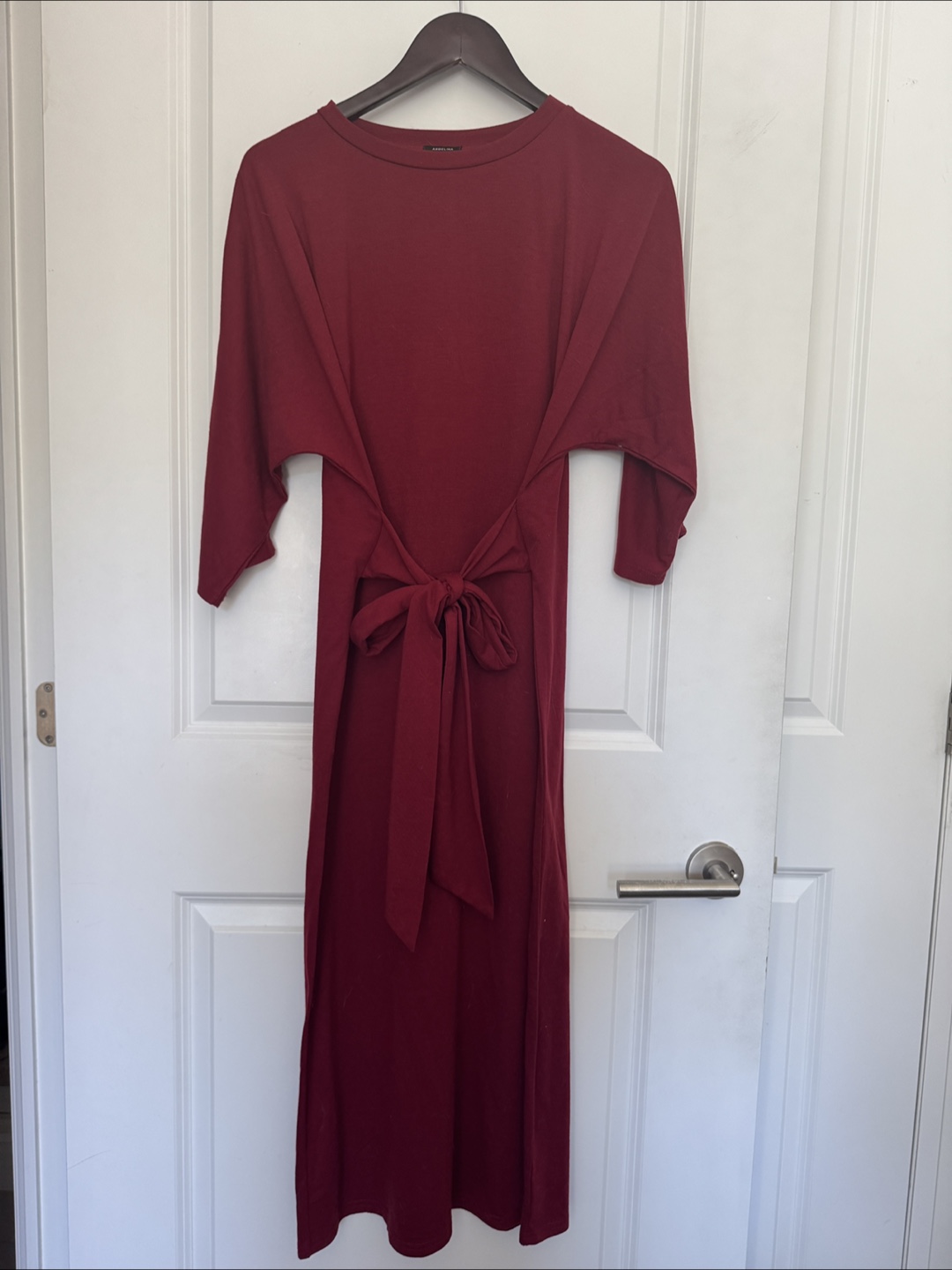 Selling a lovely burgundy midi dress! It features a flattering tie-waist design and comfortable sleeves. Perfect for any occasion! Originally purchased in Japan. No size listed but fits like women’s medium.