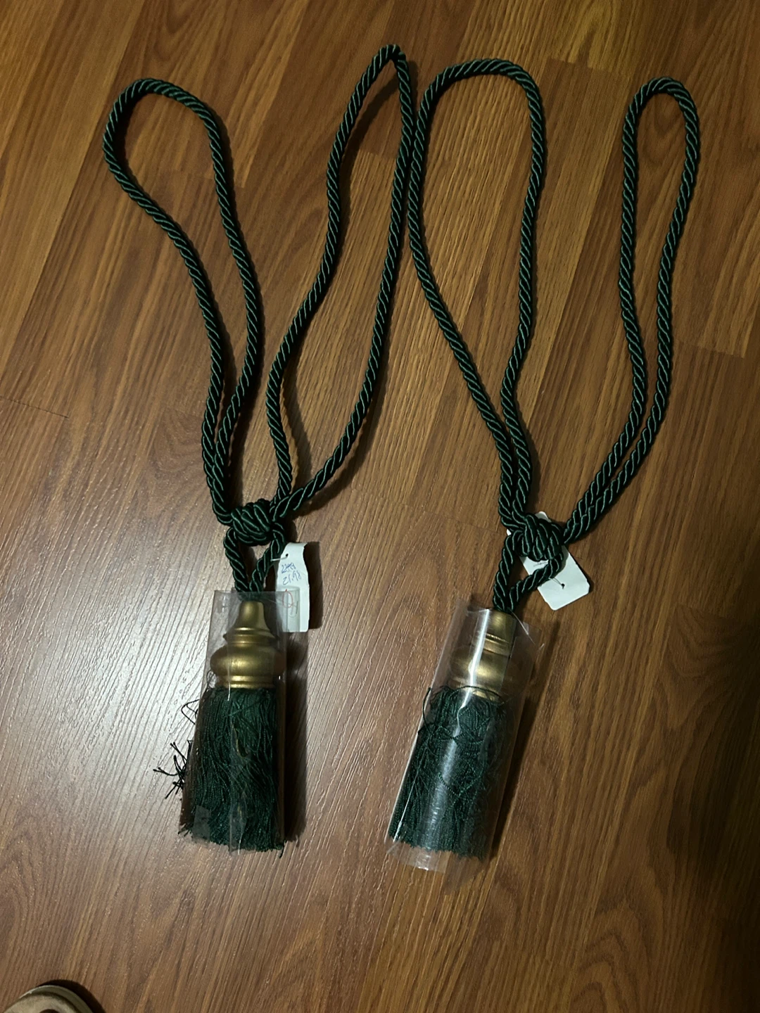 Selling a set of two green tassel curtain tiebacks. They are brand new and come in their original packaging. Perfect for adding a touch of elegance to any room!