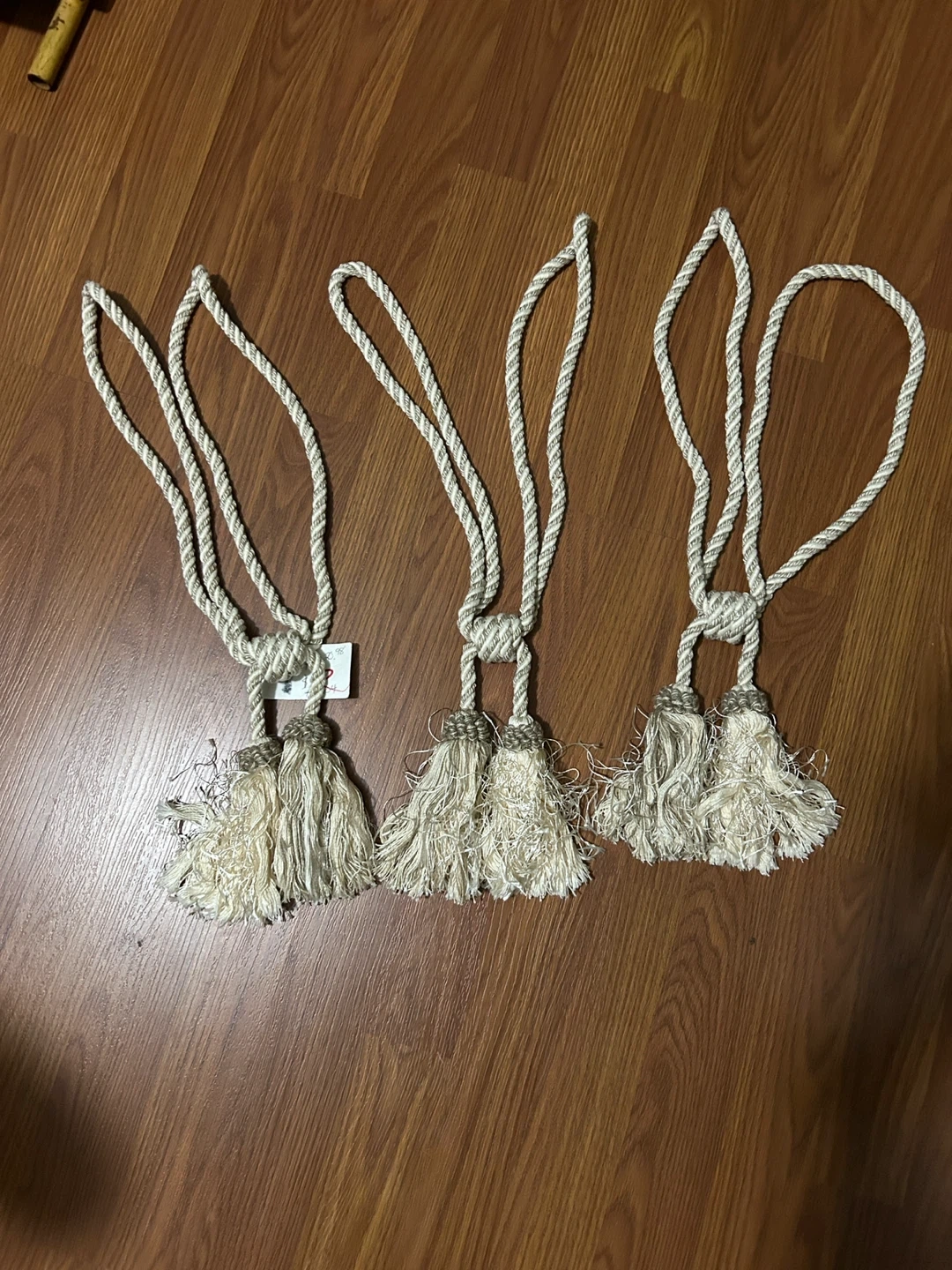 Add a touch of elegance to your home decor. New set of three tassel tiebacks for curtains or drapes. The tassels are a neutral colour, so they'll match any curtains you have.