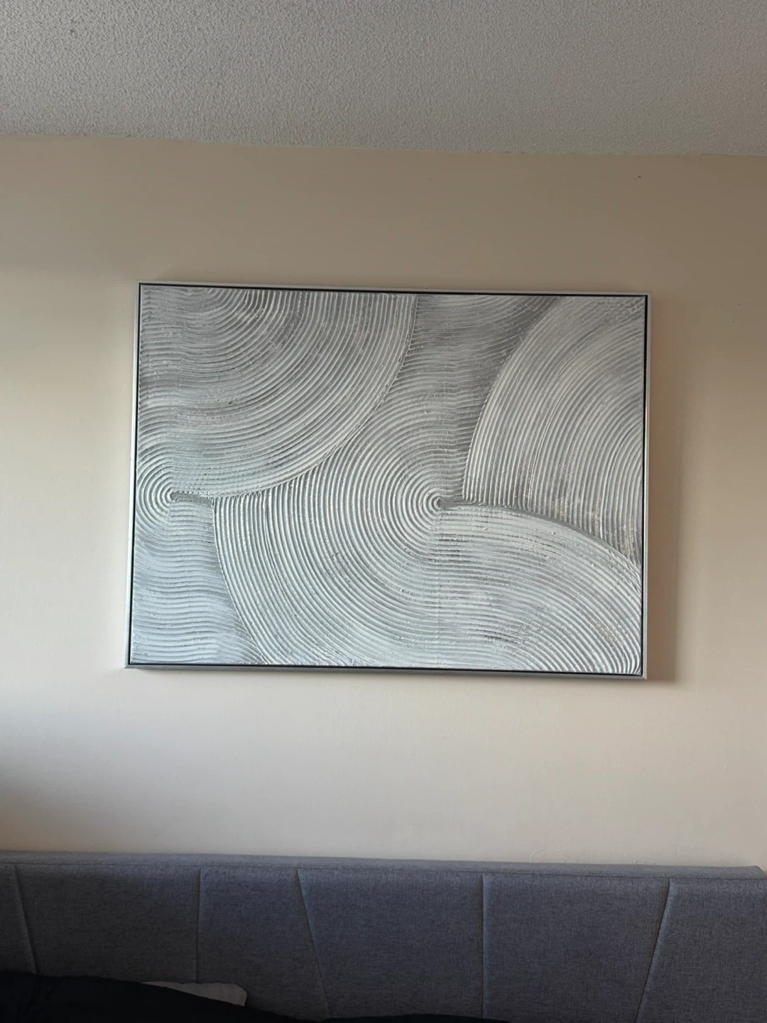 A beautiful piece of textured wall art in silver tones. It adds a modern and elegant touch to any room. Perfect for adding a focal point to your living space!