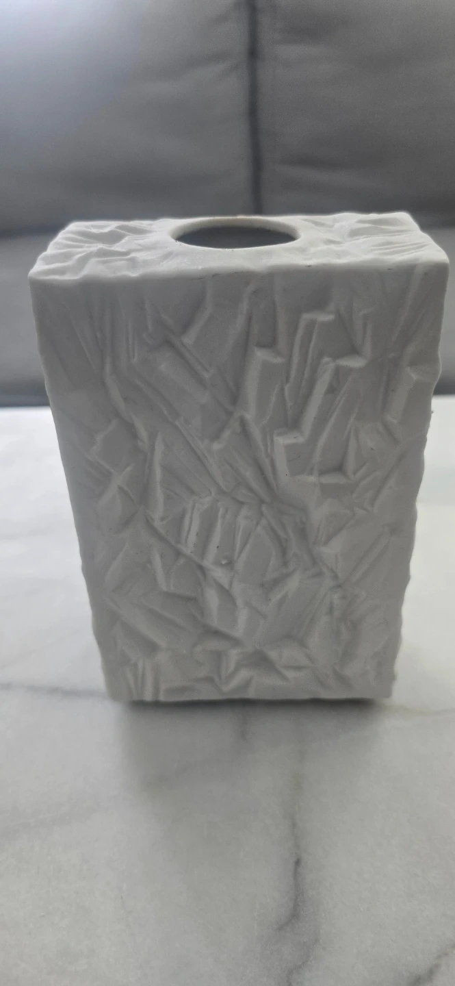 This is a vintage Shumann Arzberg white bisque porcelain vase. It has a unique textured design all over. Made in Germany.