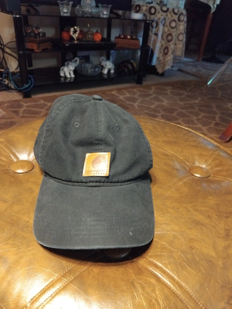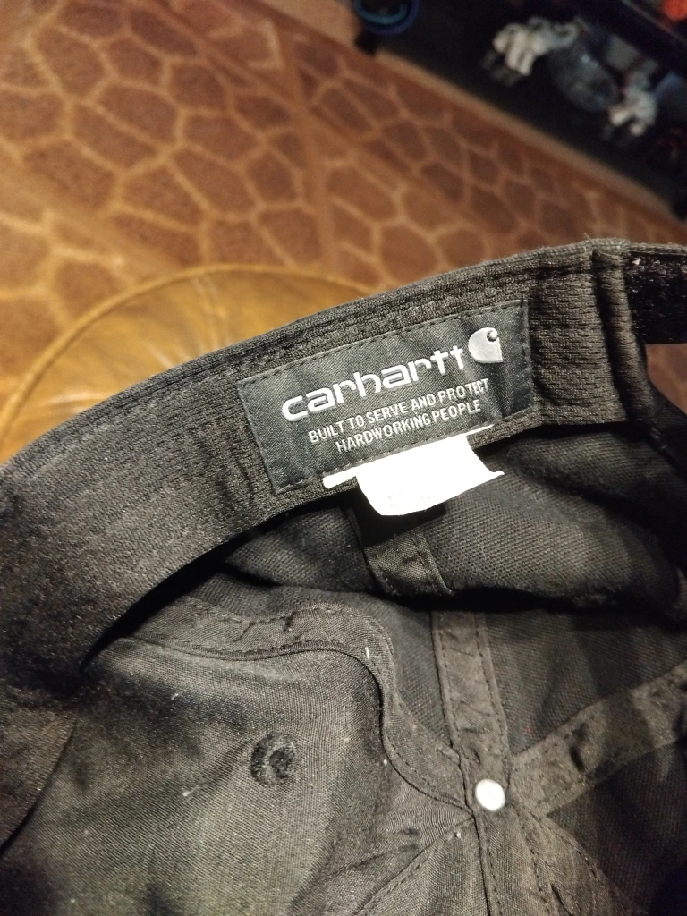 Selling a Carhartt black baseball cap. It's in great condition and ready for a new home! It's a classic style that's built to serve and protect hardworking people, as the tag says