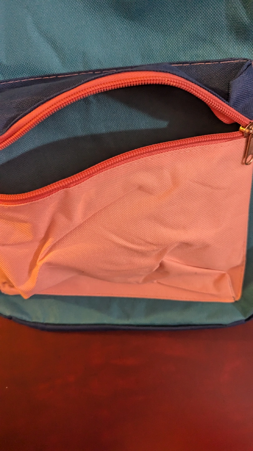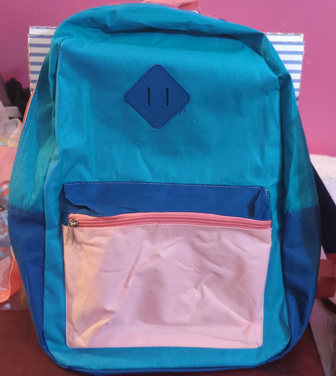 I'm selling a cute and colorful backpack! It's in great condition and ready for a new adventure. It features a main compartment, a front pocket with a zipper, and adjustable straps
