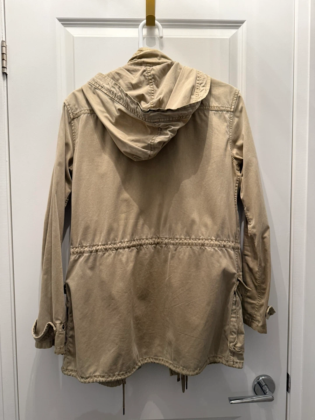 10Selling a Talula hooded jacket in a neutral beige colour! It's made of 100% cotton and is a size small. Perfect for layering!